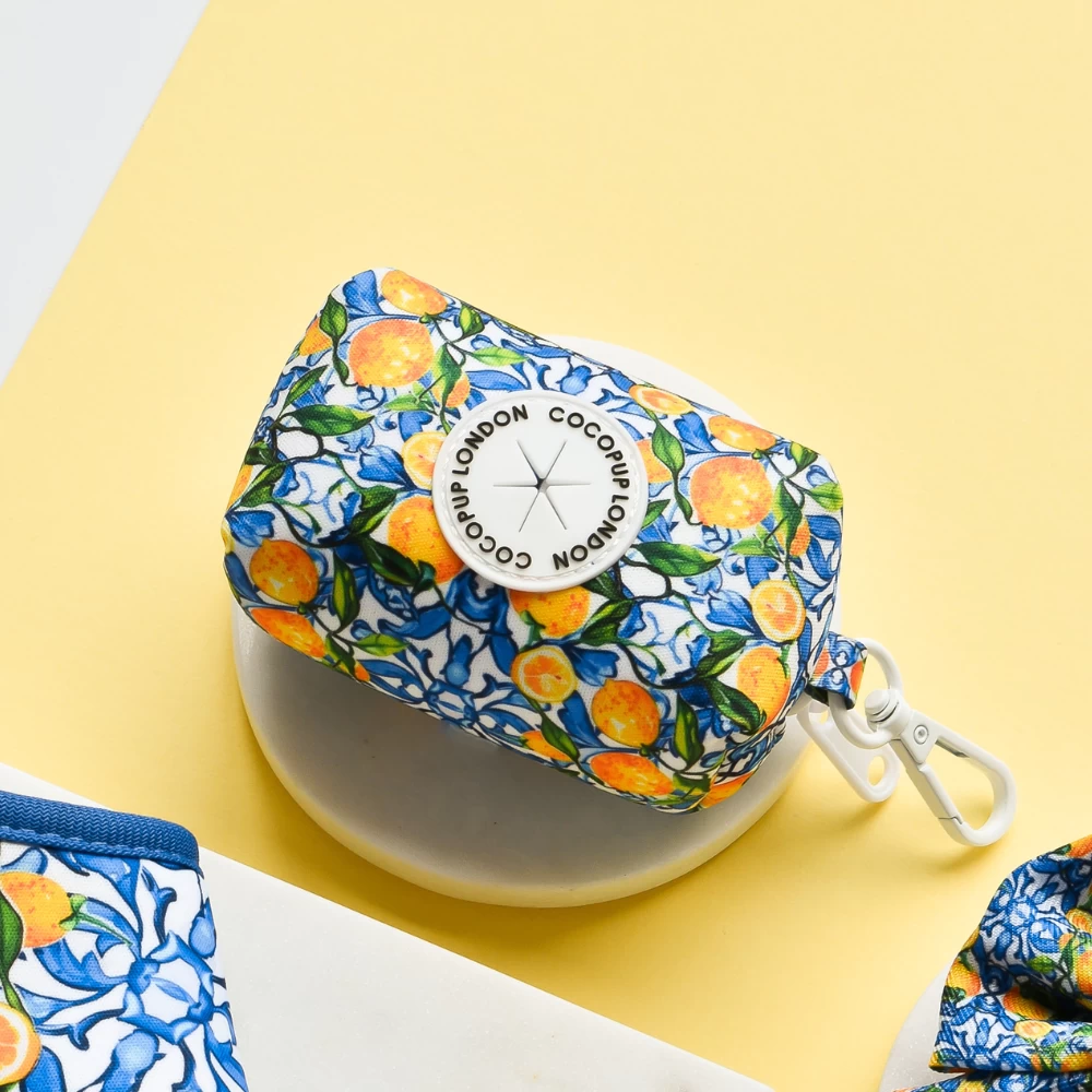 Never leave home without the Amalfi Lemon Poop Bag Holder! This sunny, yellow accessory is the perfect companion for dog walks, bringing a touch of summer to any outing. Keep your dog walks clean and stylish with this essential item.
