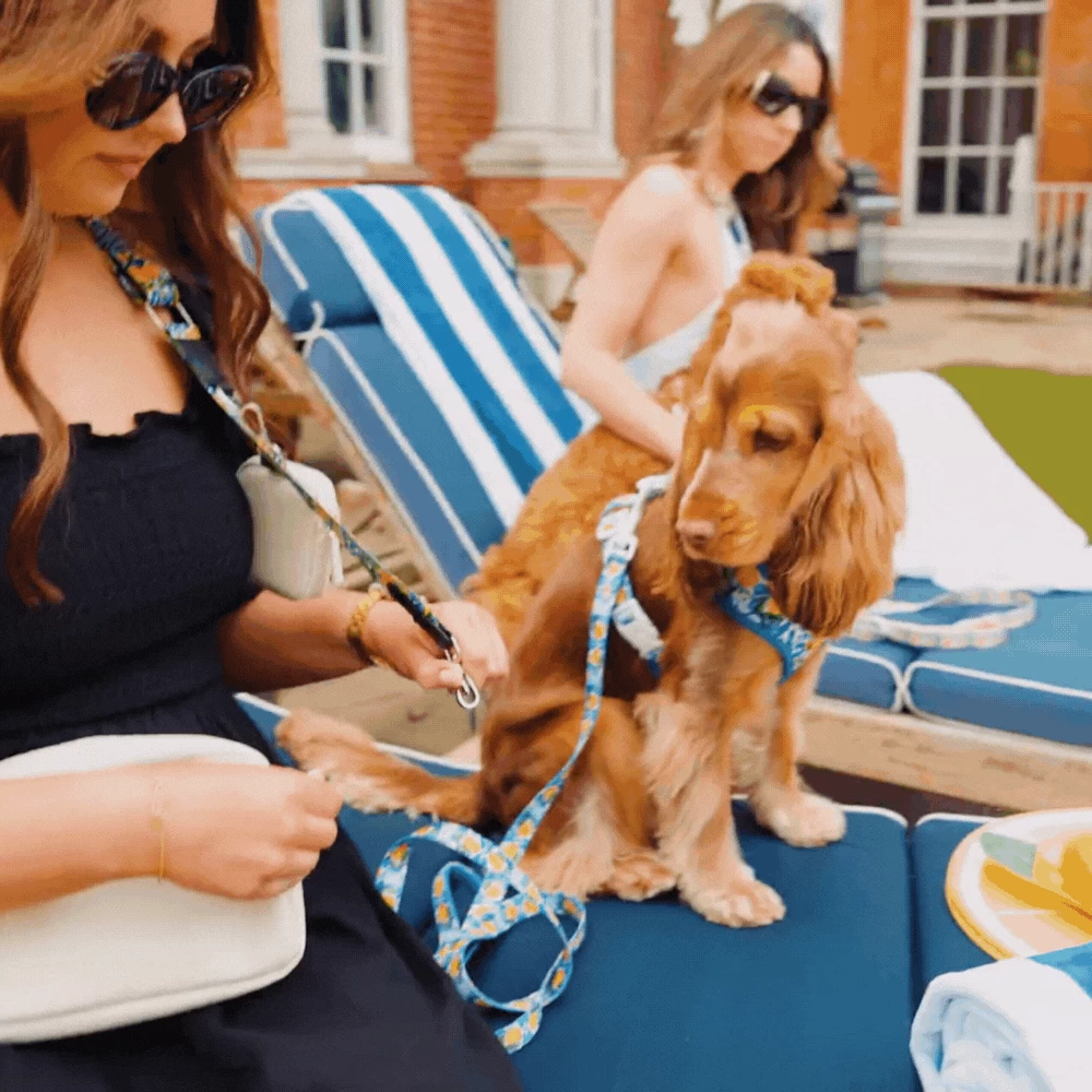 Add a splash of sunshine to your dog walking routine with our Amalfi Lemon Bag Strap! This vibrant yellow strap will brighten up any summer walk with your furry friend. Say goodbye to boring bag straps and hello to a dose of summer every time you take your pup out for a stroll.