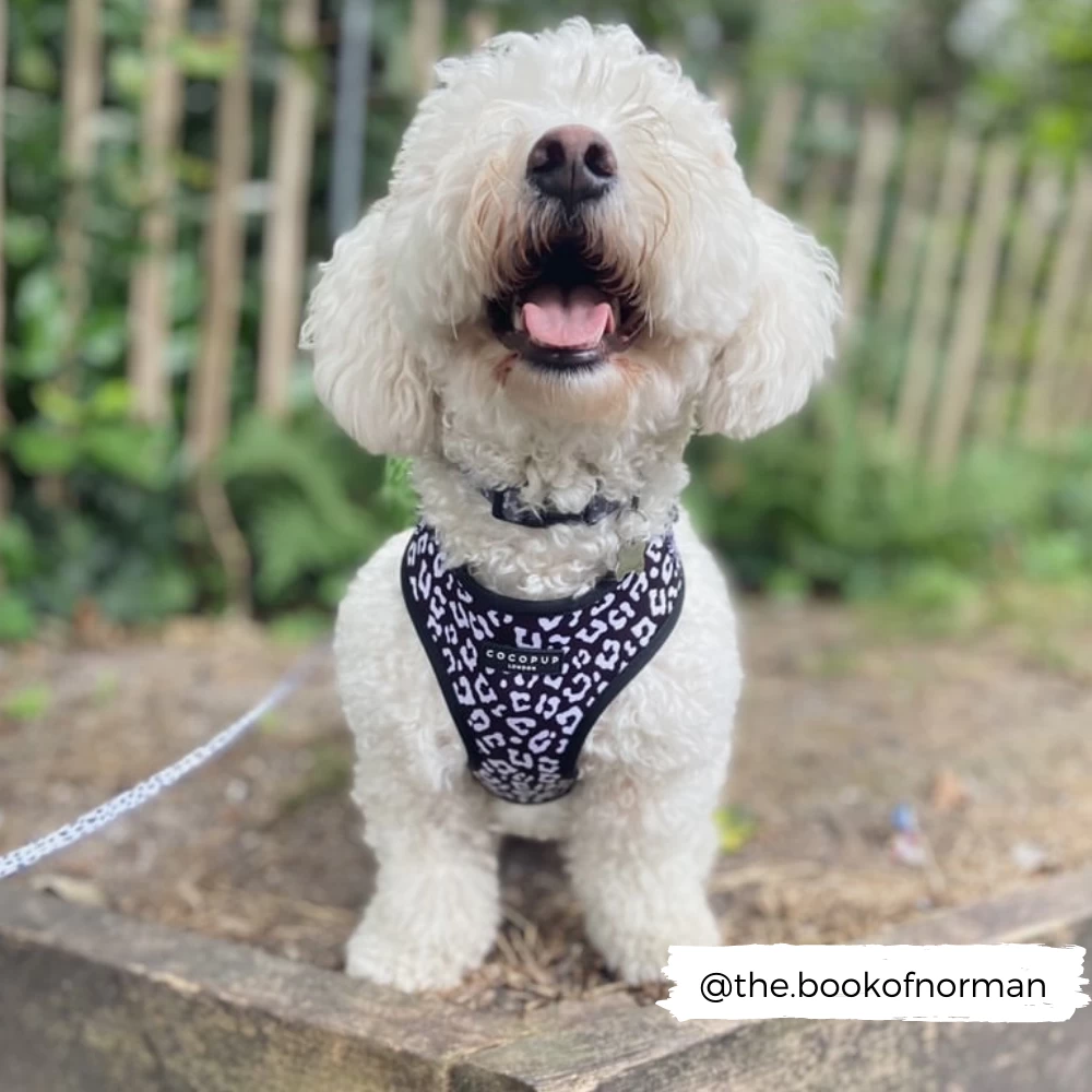 Our Adjustable Neck harnesses provide a comfy and stylish alternative to collars. Slide over your pup’s head, adjust at the neck and chest, fasten at the side and you’ll be “walkies” ready!