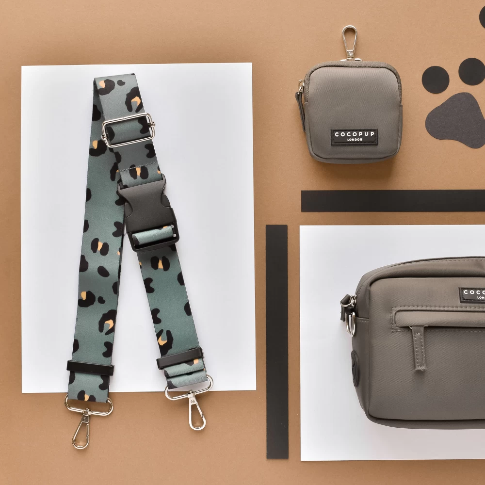 Paw’s up for our Khaki Leopard Bum Bag Strap! The pawfect handsfree way to accessorise your Cocopup Dog Walking Bag.
