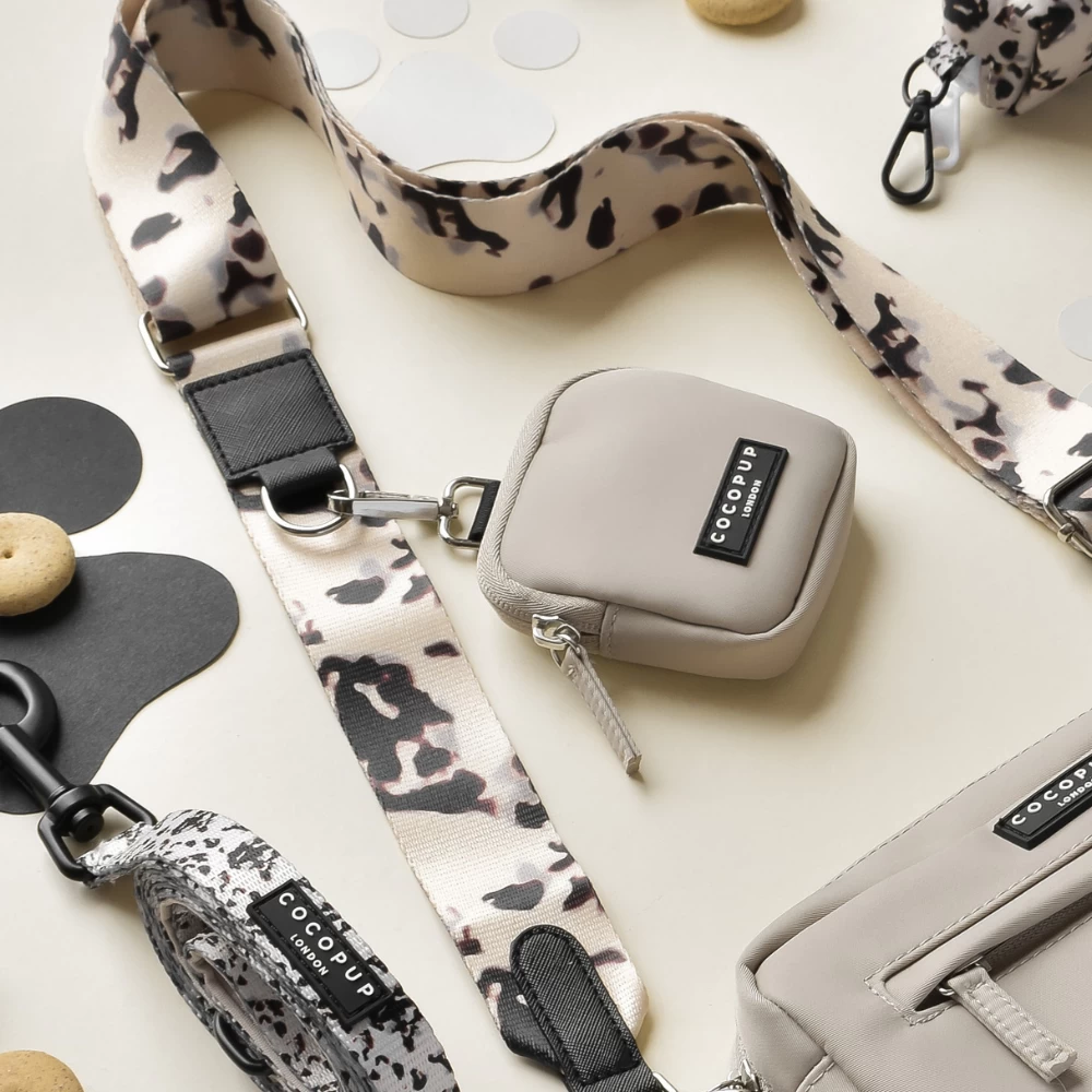 Our Bag Bundle includes: Bag, Treat Pouch & Ivory Tort Strap (with inbuilt poop bag dispenser!)