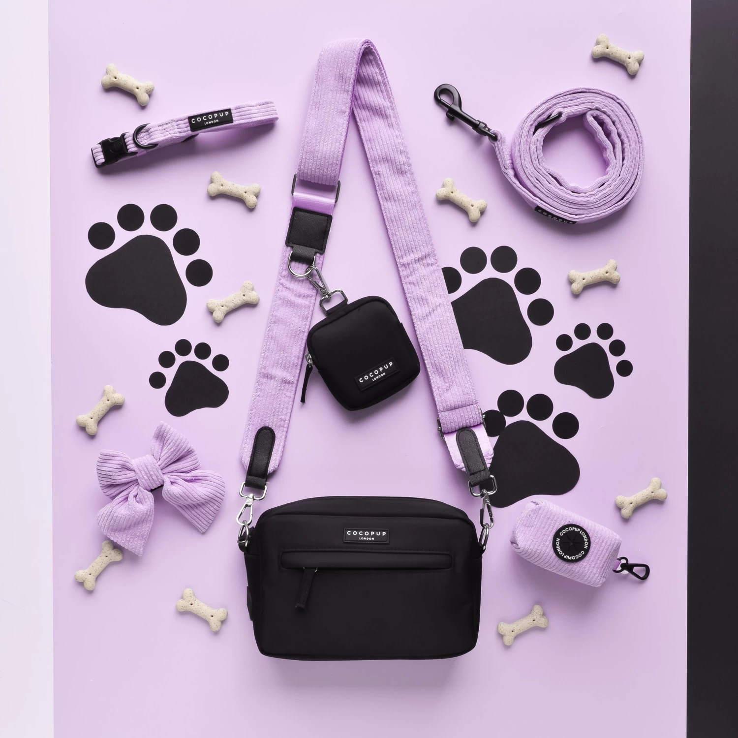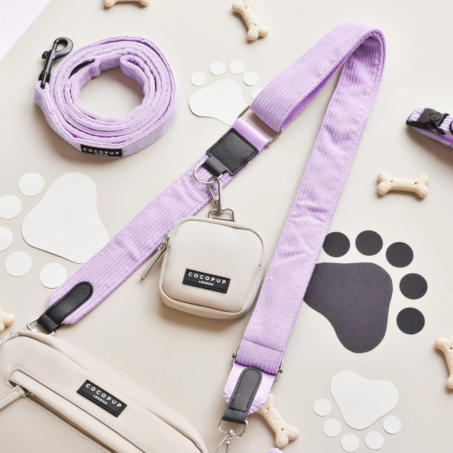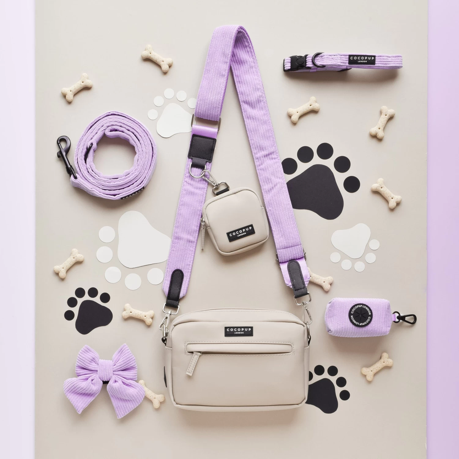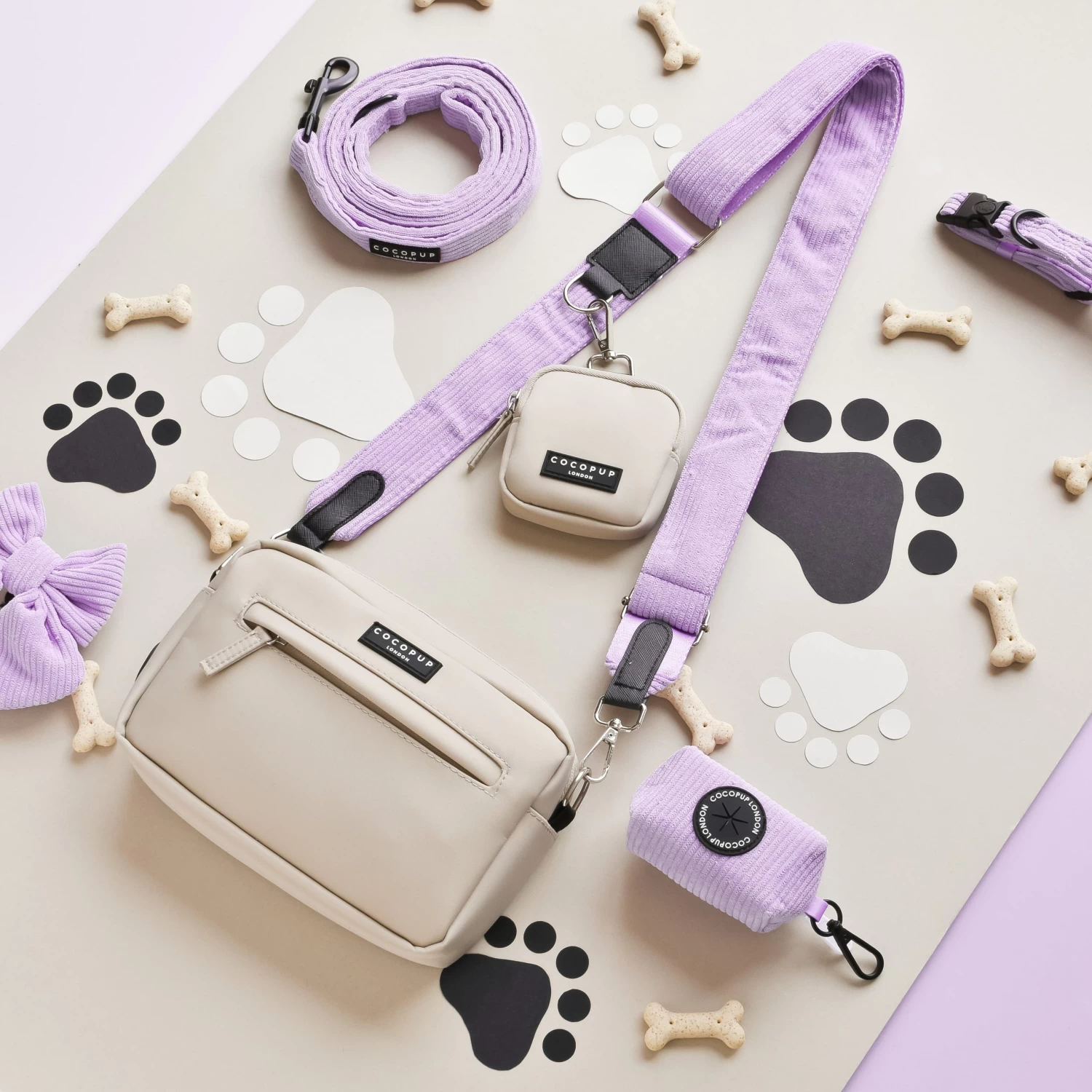 Our Bag Bundle includes:Â Bag, Treat Pouch &Â Lilac Cord Strap (with inbuilt poop bag dispenser!)