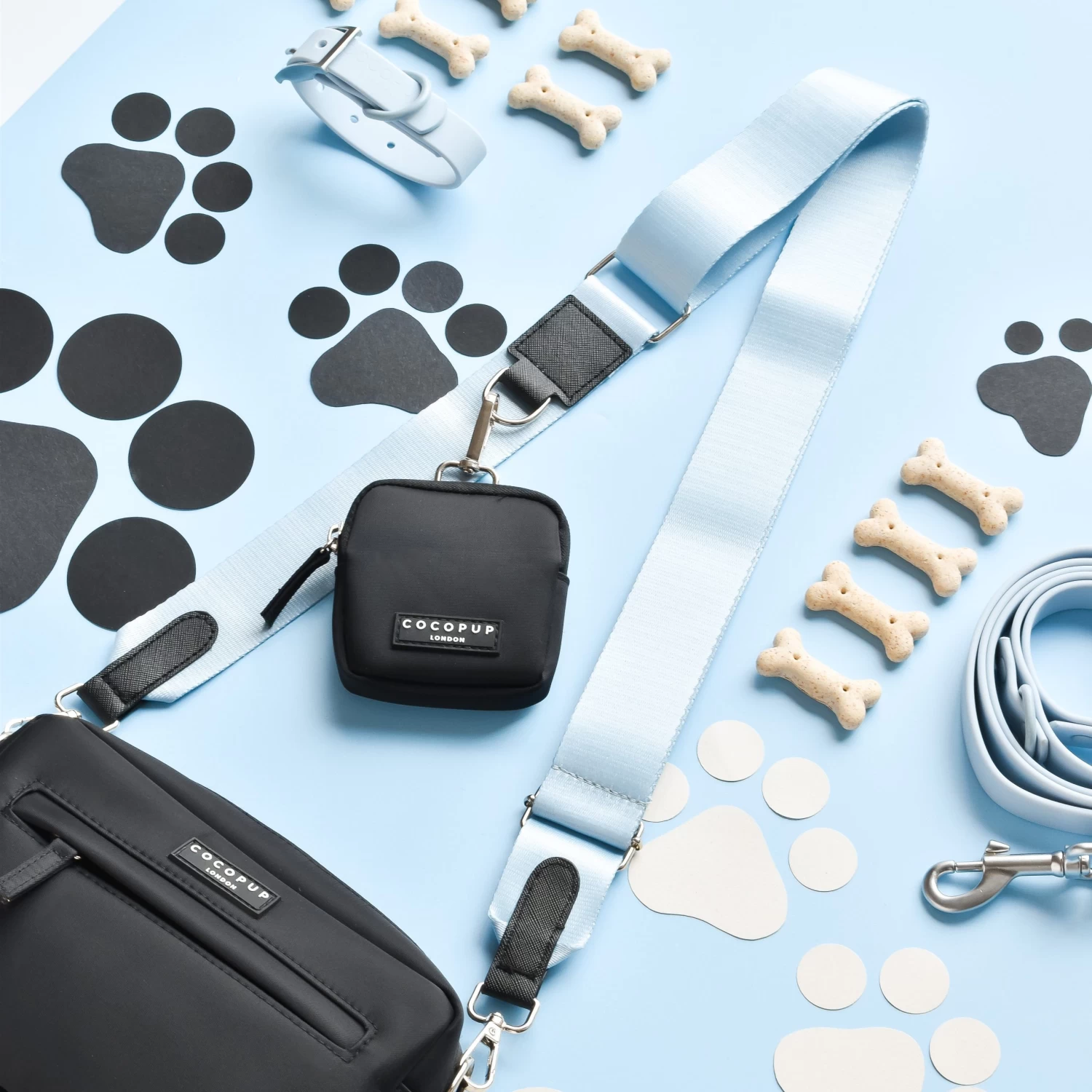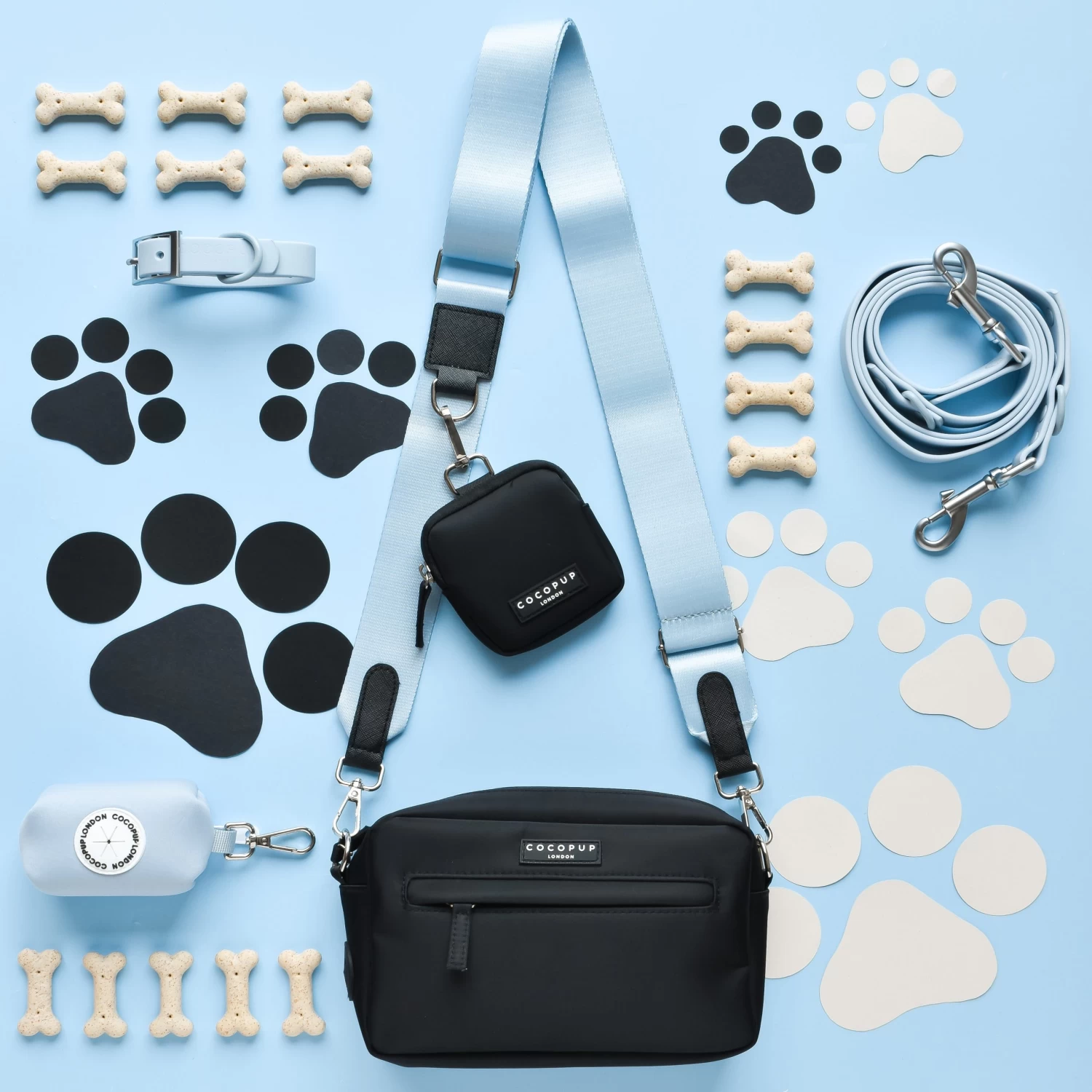 Say goodbye to chaotic poop bags and squished treats in your pockets… and say hello to our all encompassing Dog Walking Bag, Treat Pouch & Strap! The perfect solution to your Dog Walking needs, featuring a side poop bag dispenser and a treat pouch.
