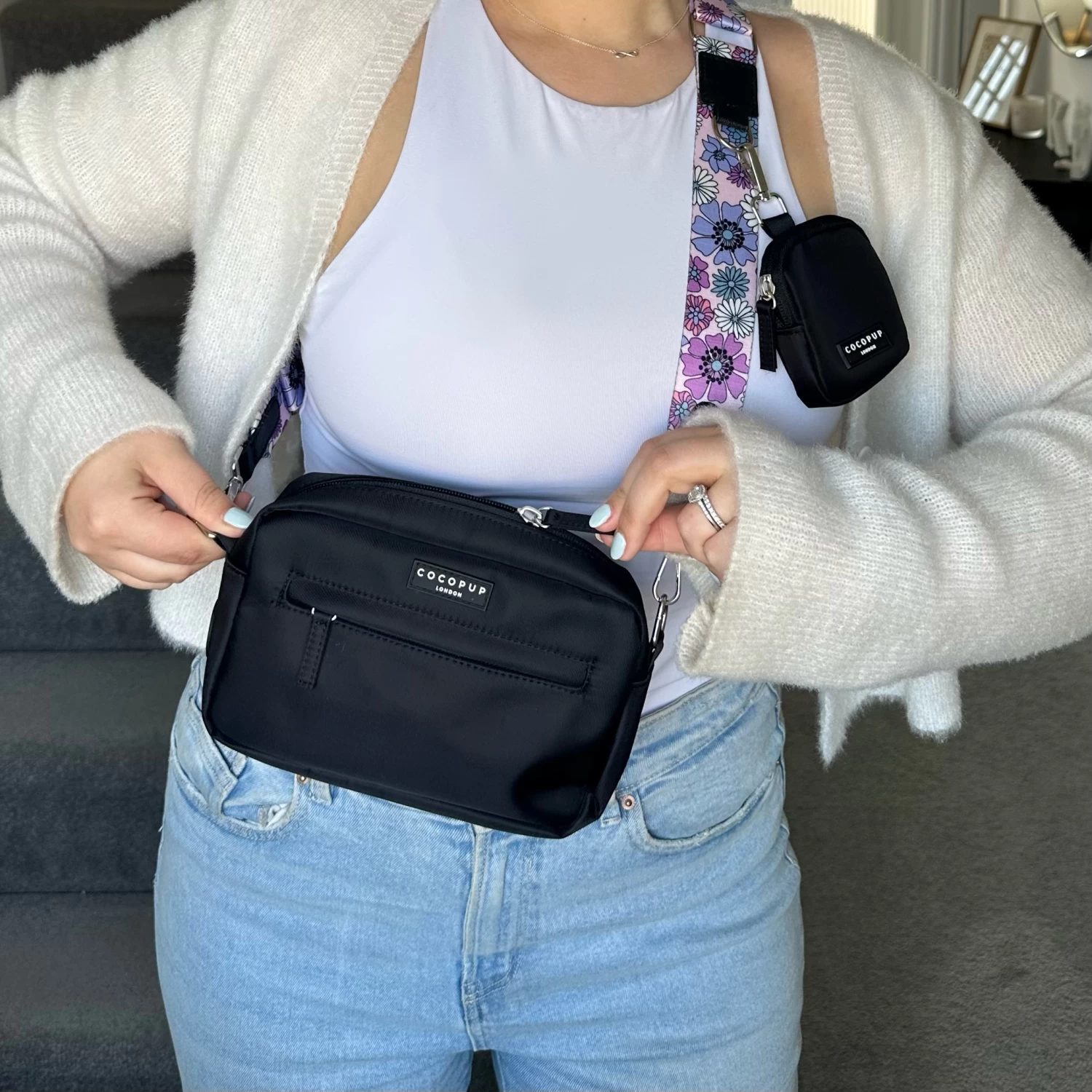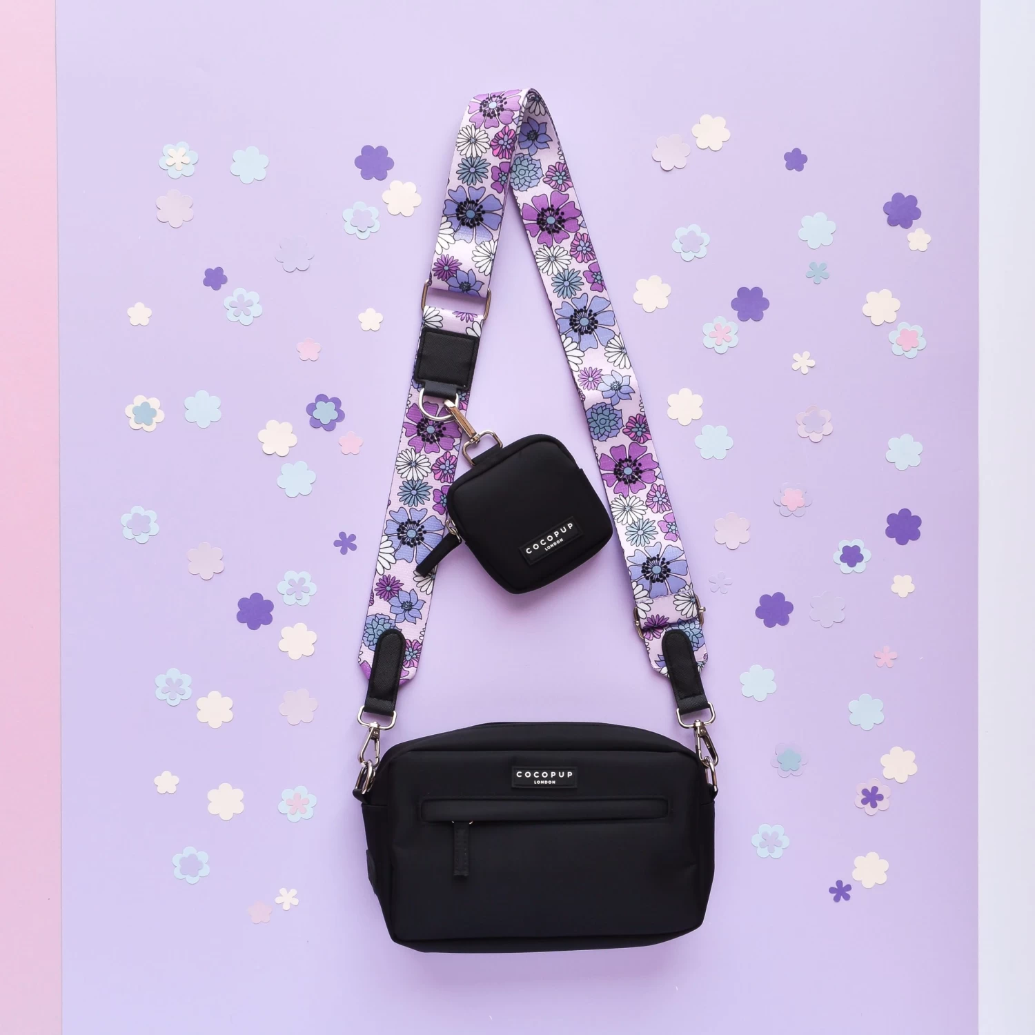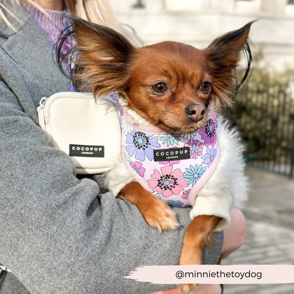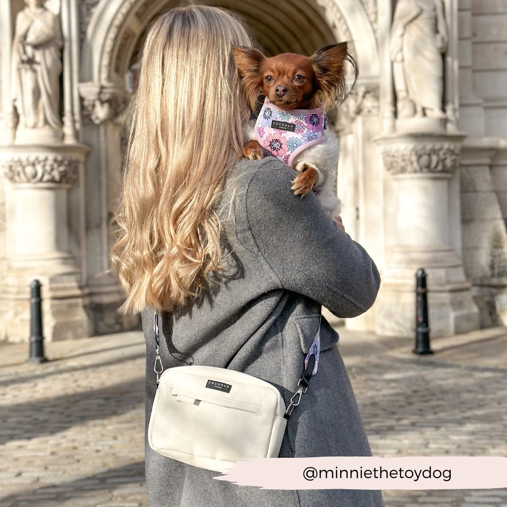 Our Bag Bundle includes: Bag, Treat Pouch & Pastel Flowers Strap (with inbuilt poop bag dispenser!)