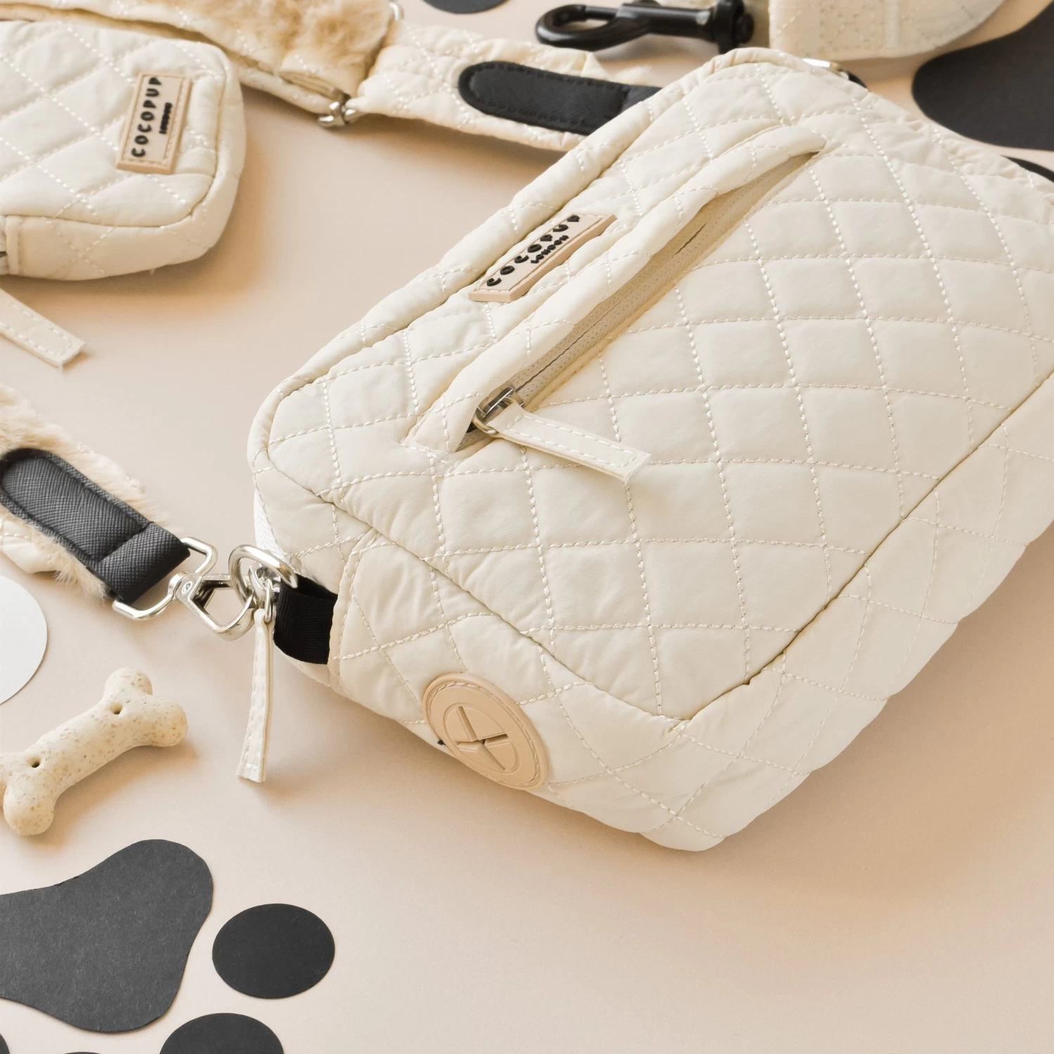 Our Bag Bundle includes: Quilted Dog Walking Bag, Quilted Treat Pouch with Quilted Bag Strap (with inbuilt poop bag dispenser!)