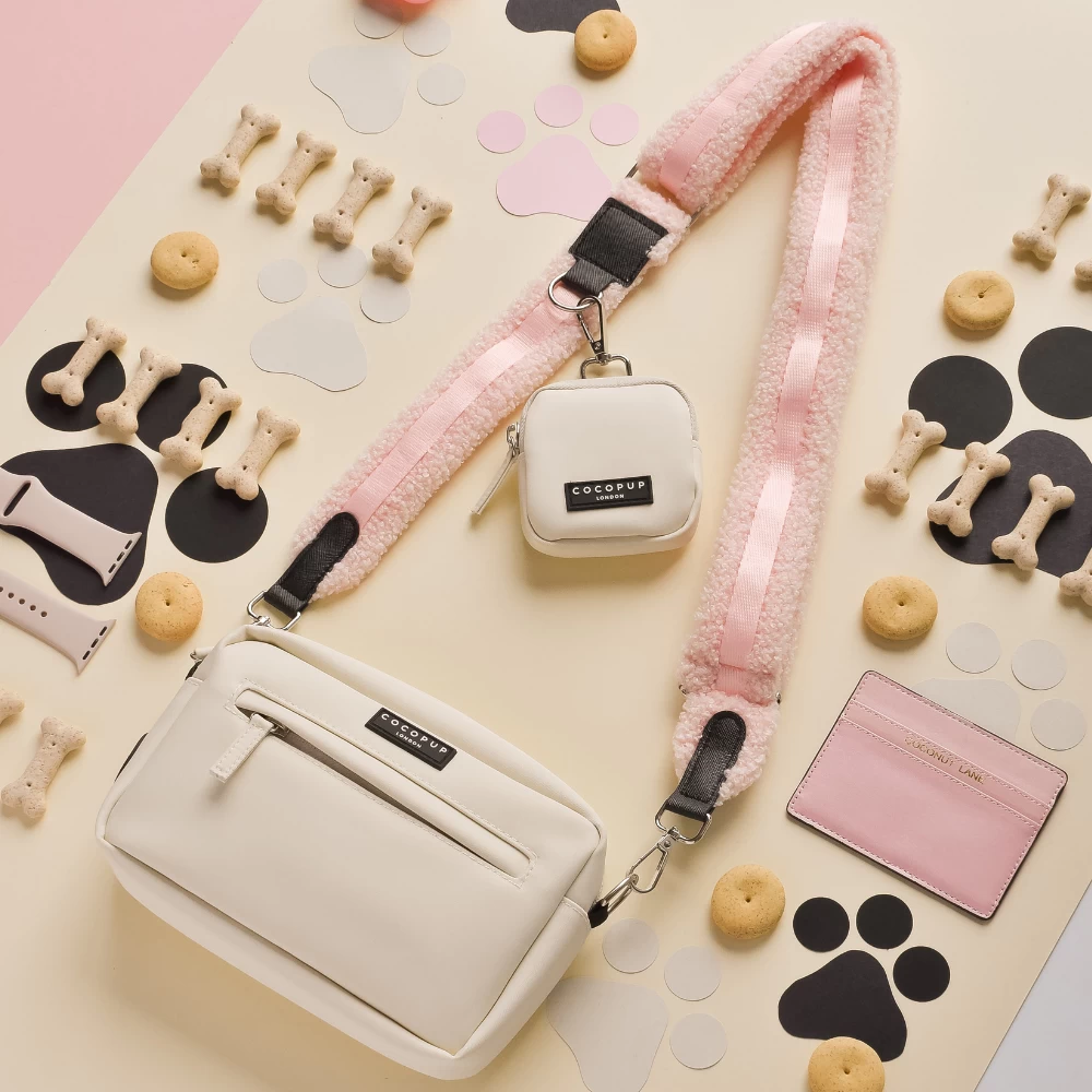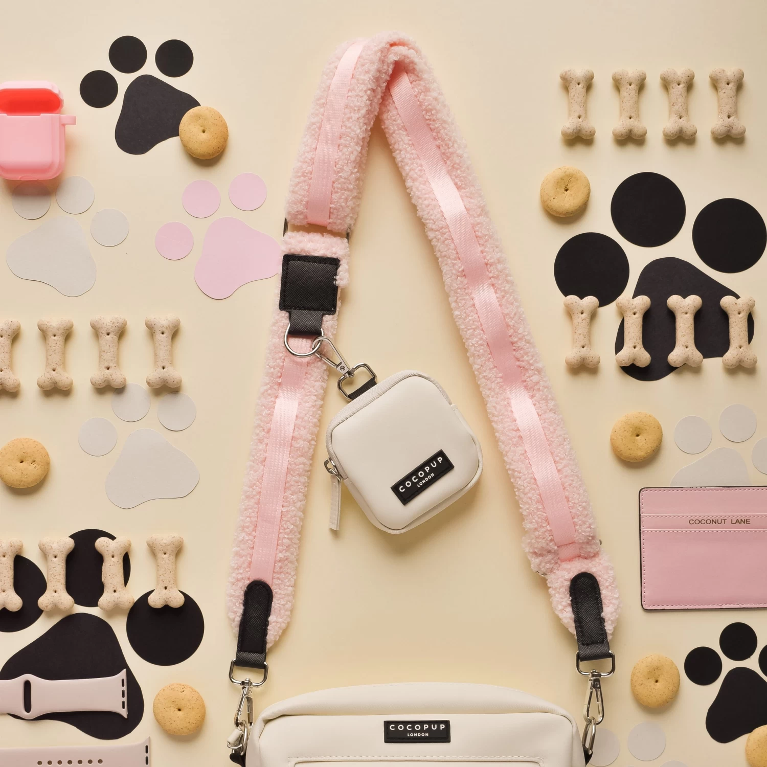 Our Bag Bundle includes: Bag, Treat Pouch & Love-A-Lot Pink Teddy Strap (with inbuilt poop bag dispenser!)