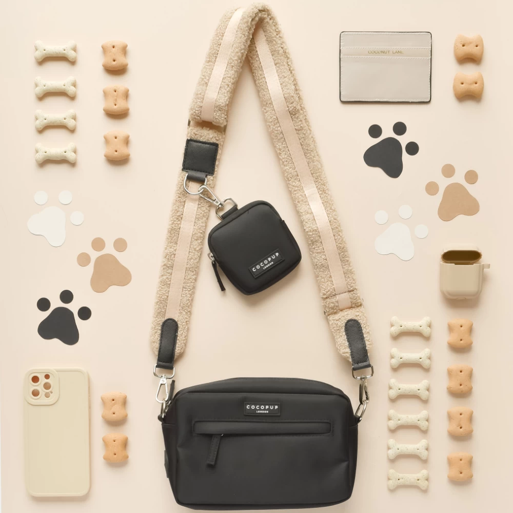 Our Bag Bundle includes: Bag, Treat Pouch & Teddy Paddington Strap (with inbuilt poop bag dispenser!)