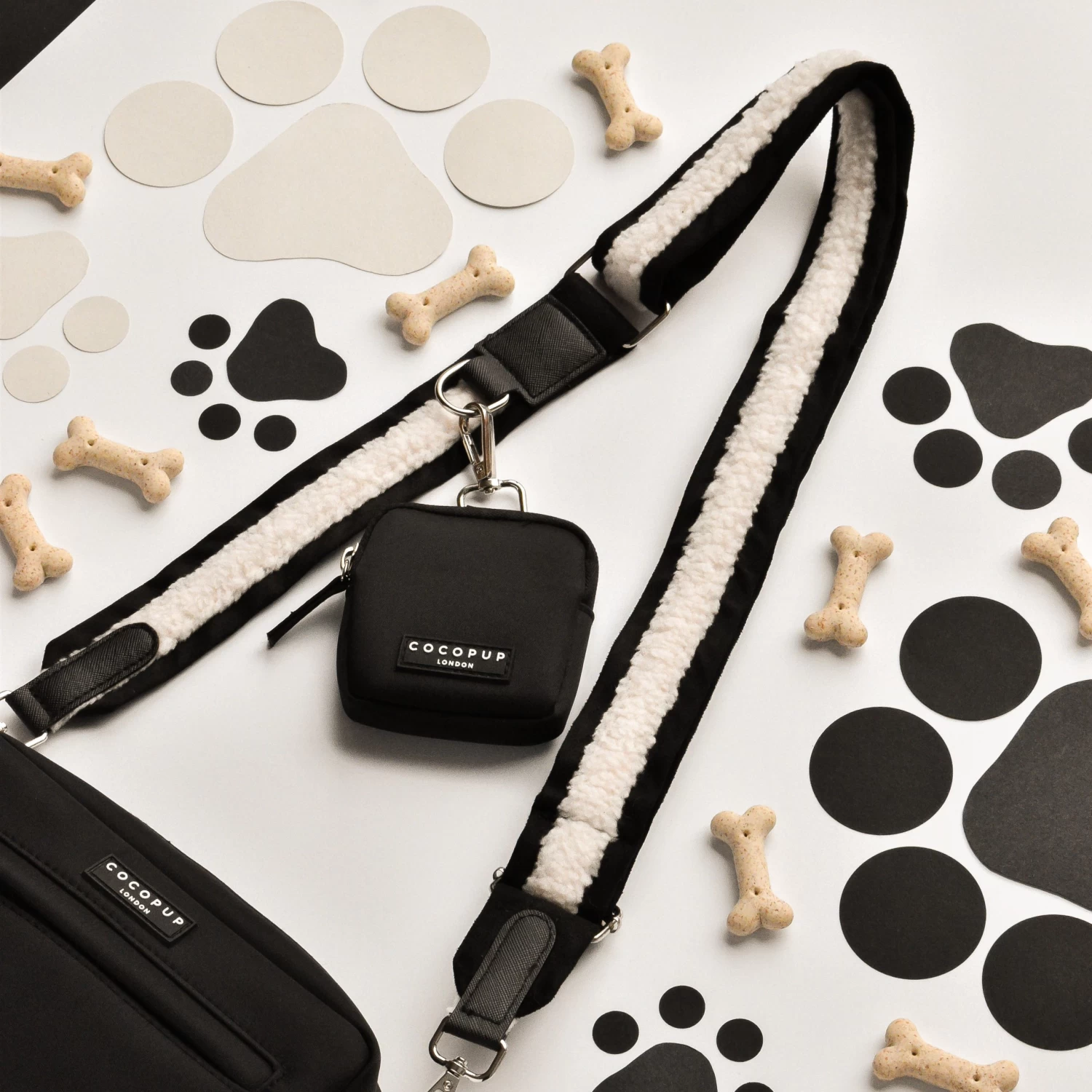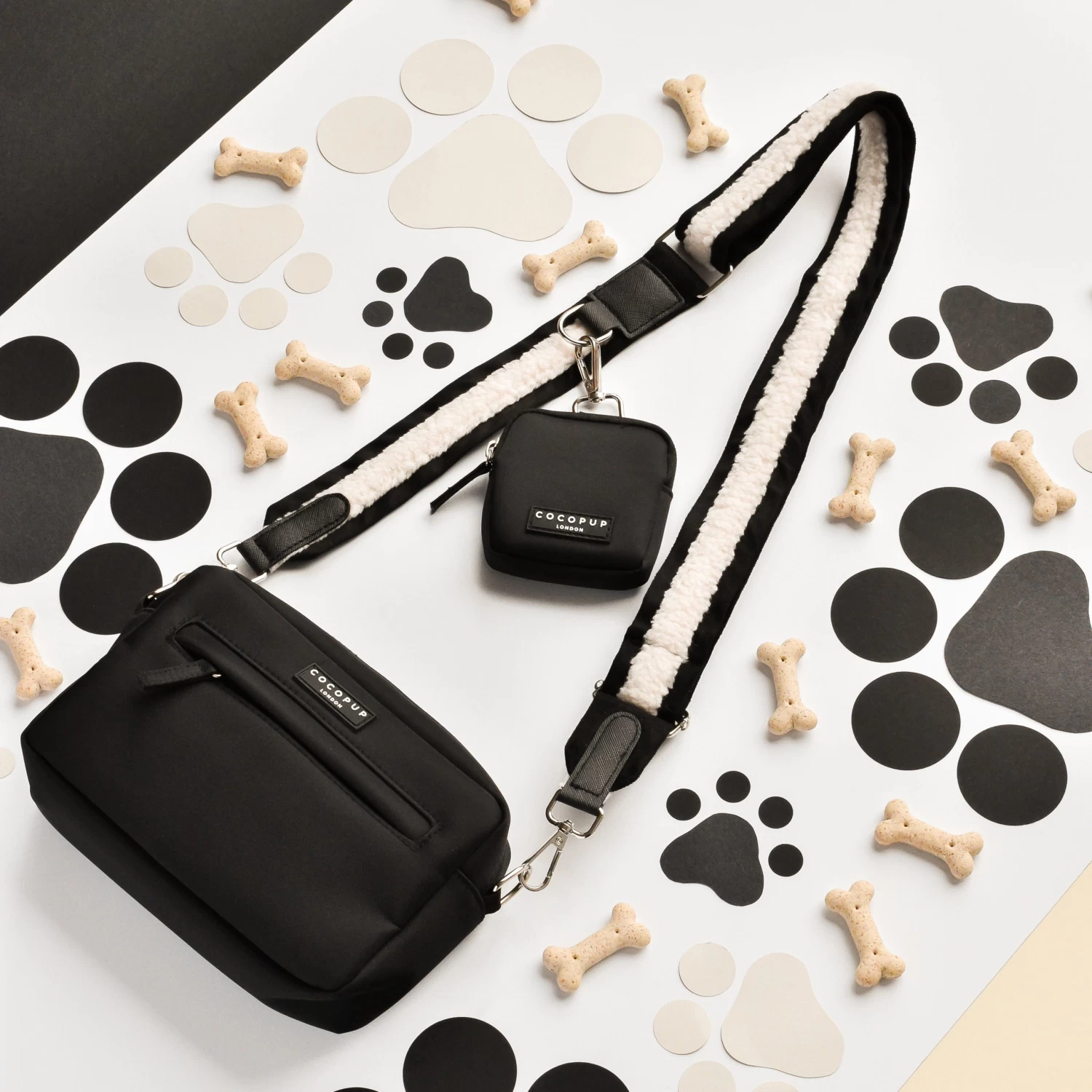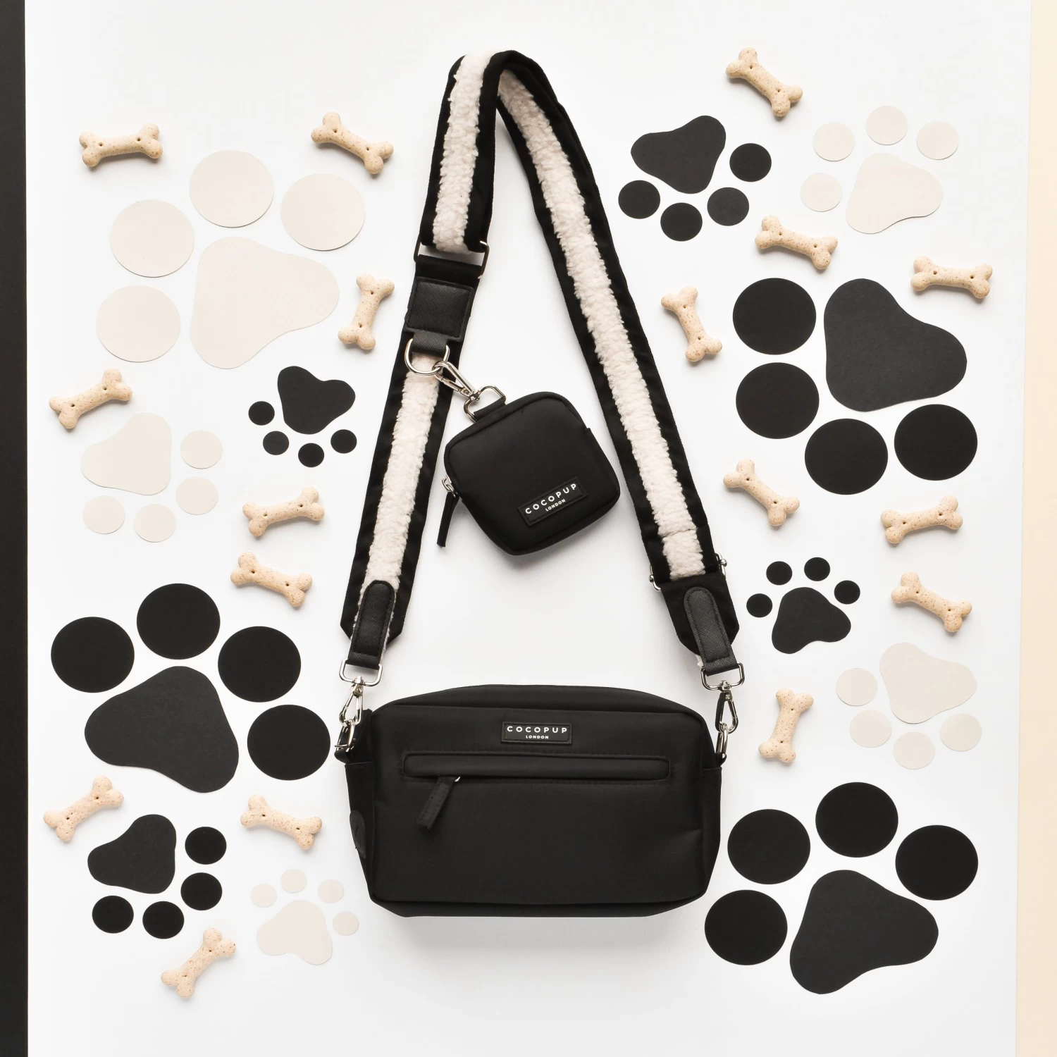 Our Bag Bundle includes: Black Bag, Black Treat Pouch & Black Aviator Bag Strap (with inbuilt poop bag dispenser!)