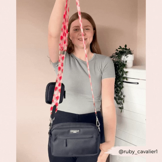 Say goodbye to chaotic poop bags and squished treats in your pockets… and say hello to our all encompassing Dog Walking Bag, Treat Pouch & Strap! The perfect solution to your Dog Walking needs, featuring a side poop bag dispenser and a treat pouch.