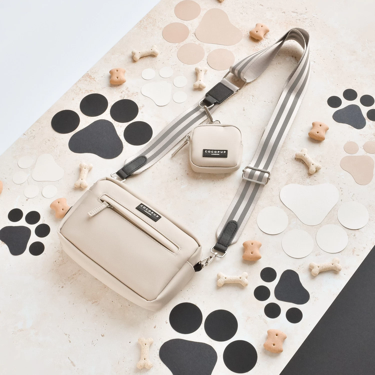 Our Bag Bundle includes: Caramel Latte Bag, Caramel Latte Treat Pouch & Reflective Nude Bag Strap (with inbuilt poop bag dispenser!)