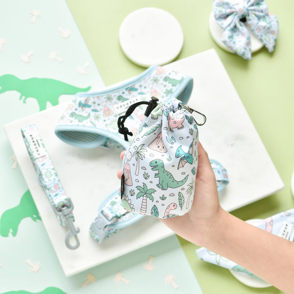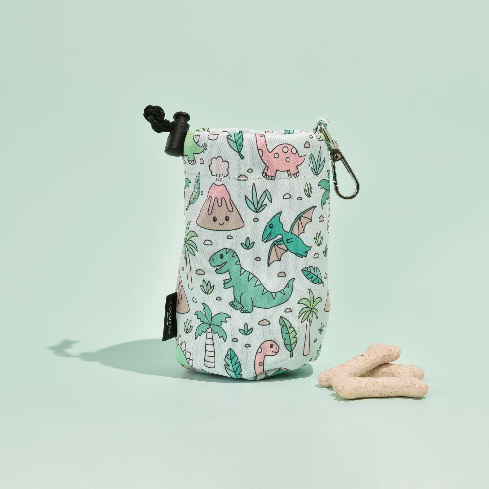 Take your dog walks to the next level with this Dino-mite drawstring treat pouch! Conveniently store treats for training while on adventures with your pup. Cute and quirky, just like your furry friend!