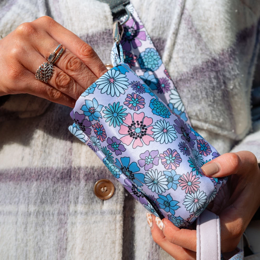 Floral season is in full bloom and our perfectly Pastel Flowers Drawstring Treat Pouch is here to bring all of the flower power vibes to your walkies.