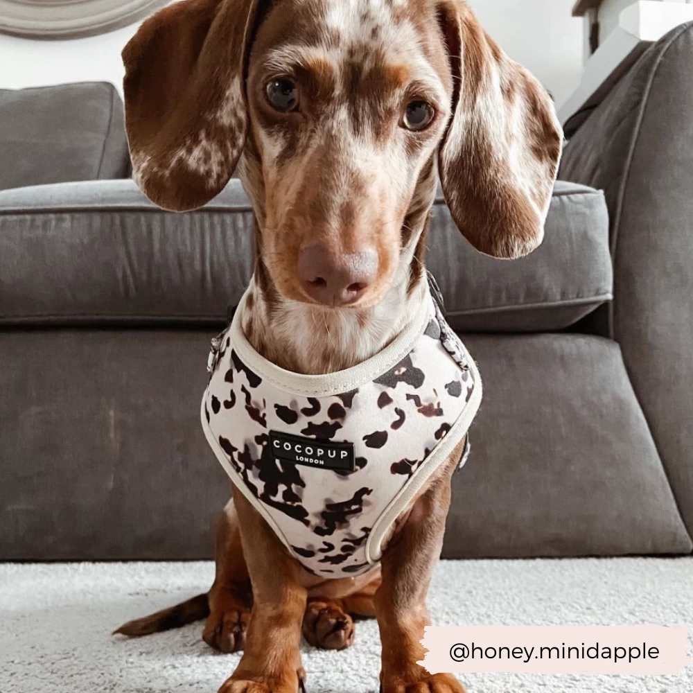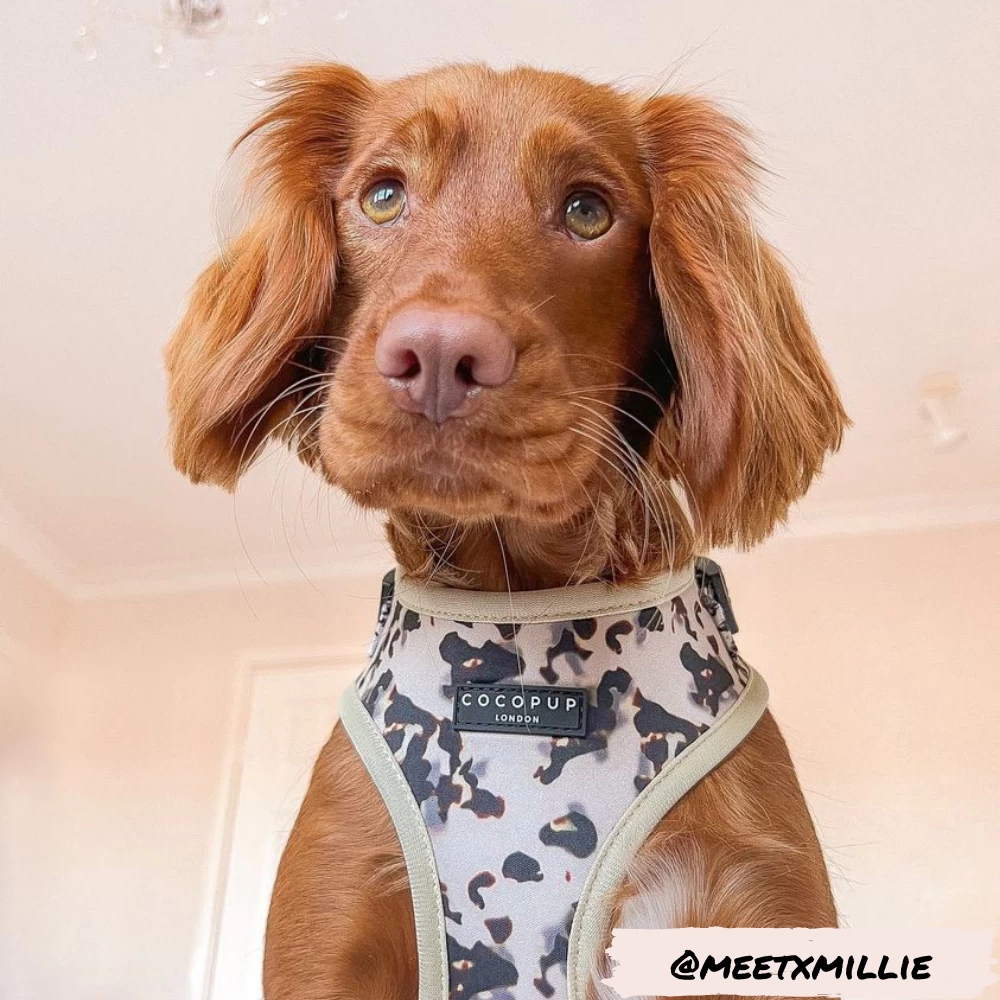 Our Adjustable Neck harnesses provide a comfy and stylish alternative to collars. Slide over your pup’s head, adjust at the neck and chest, fasten at the side and you’ll be “walkies” ready!