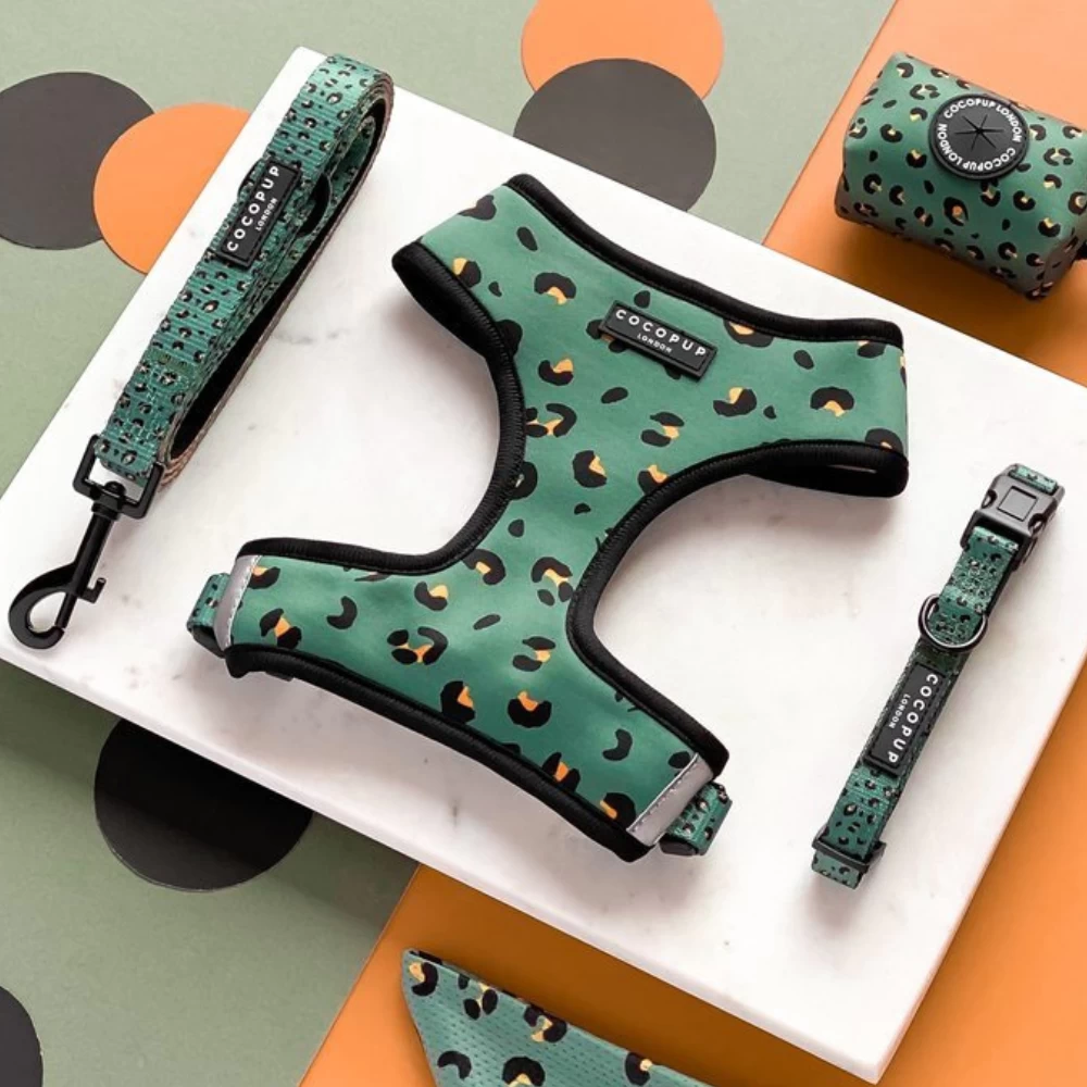 Take a walkies on the wild side with our adorable Khaki Leopard Adjustable Neck Harness, Lead and Collar Bundle!