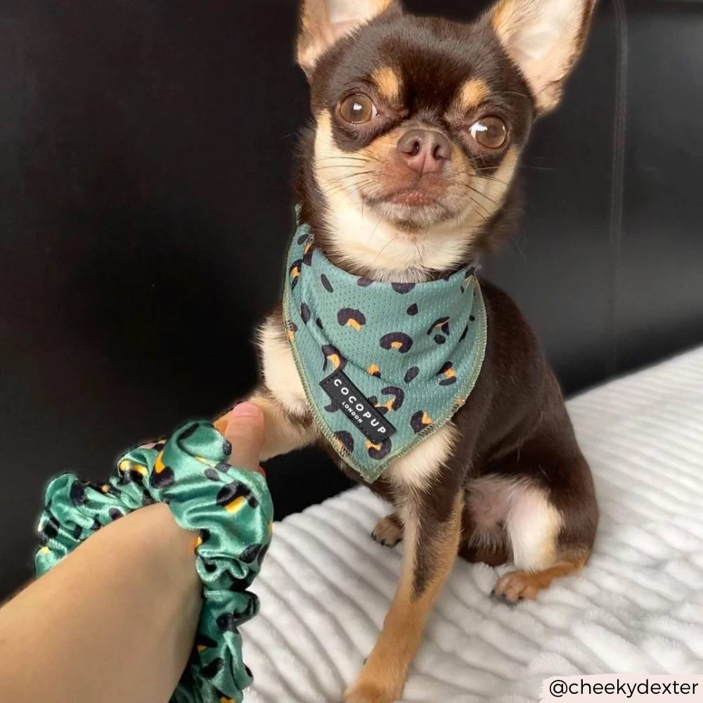 Time to get wild and match your pooch with our Khaki Leopard Scrunchie. The perfect accessory for dog walk messy buns!