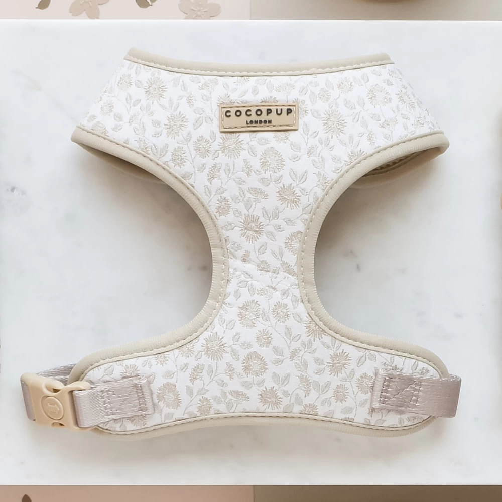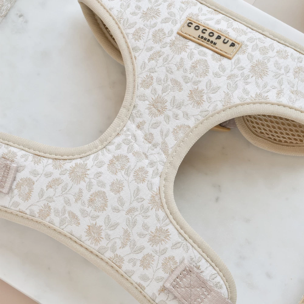 Take your pup for a walk in style with our Luxe Adjustable Neck Harness! Featuring a chic embroidered design inspired by a beautiful garden meadow, this harness is perfect for the fashion-forward dog. Say goodbye to boring walks and hello to some serious #pupgoals.