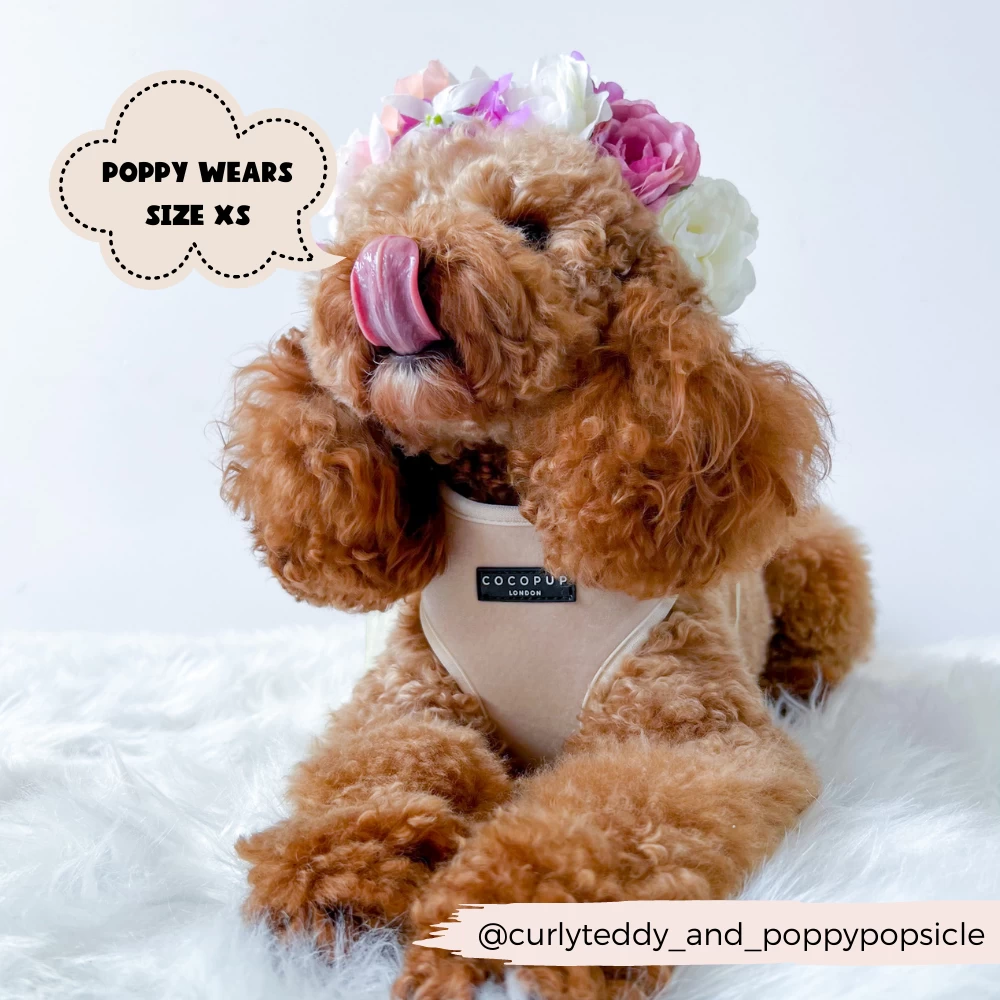 Our Adjustable Neck harnesses provide a comfy and stylish alternative to collars. Slide over your pup’s head, adjust at the neck and chest, fasten at the side and you’ll be “walkies” ready!