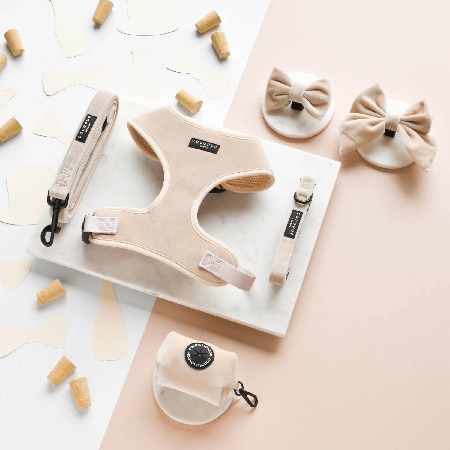 Give your pup some serious style with this LUXE Velvet Sailor Bow Tie! Made from a luxe velvet, your furry friend will be living their best life with this fashionable bow tie. Dress up that pup in this champagne-coloured accessory for any special occasion or just for fun! Your dog deserves a little luxury!