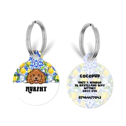 The tag is double sided, the front features your fave Cocopup Amalfi Lemon print with a super cute cartoon version of your doggo along with their name. On the back we can print key important information such as your last name, address and phone number. Our ID tags will ensure you pooch can strut its stuff in style.