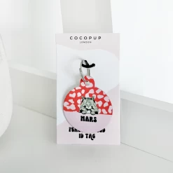 The tag is double sided, the front features your fave Cocopup Dinopaws print with a super cute cartoon version of your doggo along with their name. On the back we can print key important information such as your last name, address and phone number. Our ID tags will ensure you pooch can strut its stuff in style.