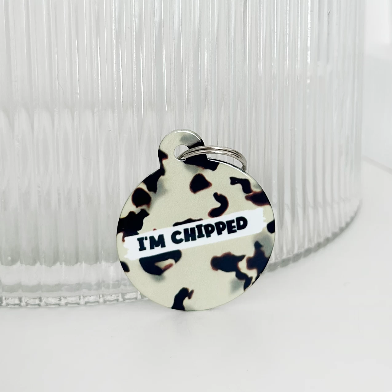 The tag is double sided, the front features your fave Cocopup Ivory Tort print with the ‘I’m Chipped’ slogan so everyone knows! On the back we can print key important information such as your last name, address and phone number.