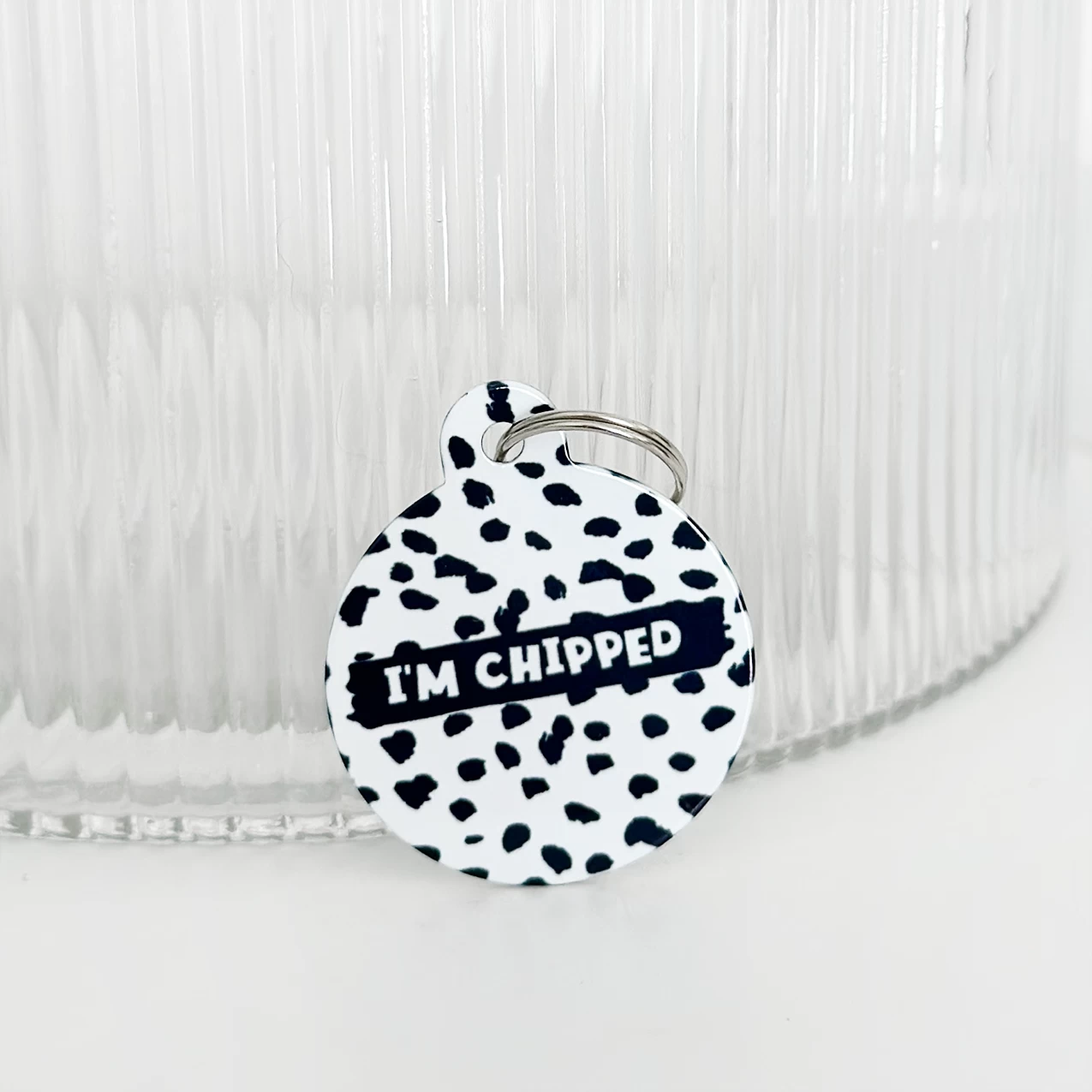 The tag is double sided, the front features your fave Cocopup Monochrome Spots print with the ‘I’m Chipped’ slogan so everyone knows! On the back we can print key important information such as your last name, address and phone number.