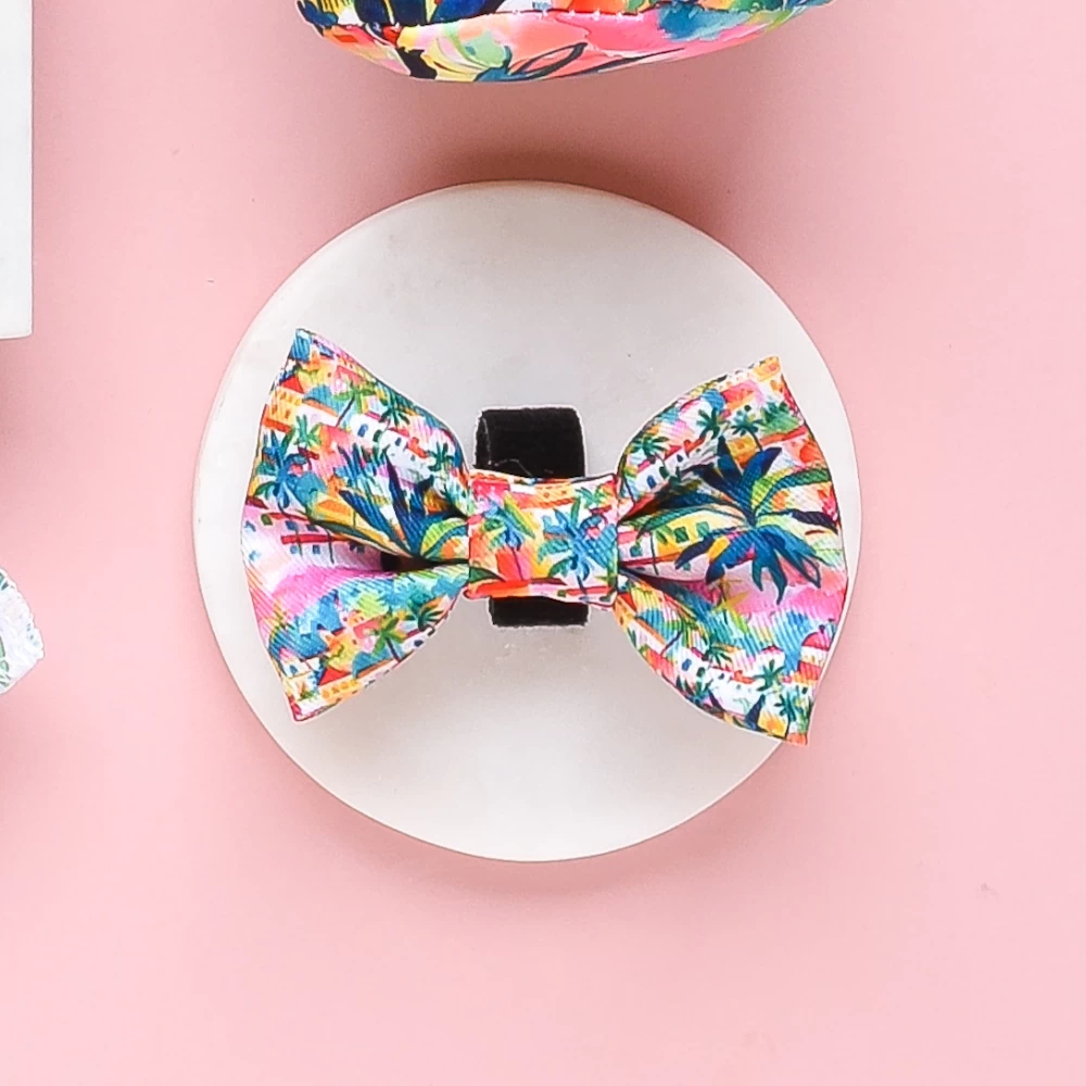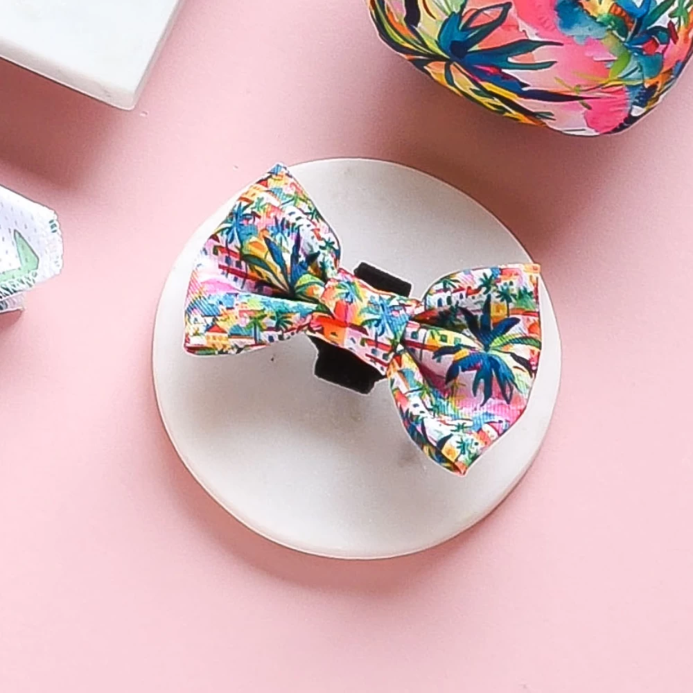 Get your pup ready for some summertime fun with our Portofino Pup Bow Tie! Perfect for dog walks on the beach, this pink bow tie will add a pop of sunshine to your furry friend’s wardrobe. Plus, with a playful palm tree design, they’ll be the talk of the town (or the dog park).