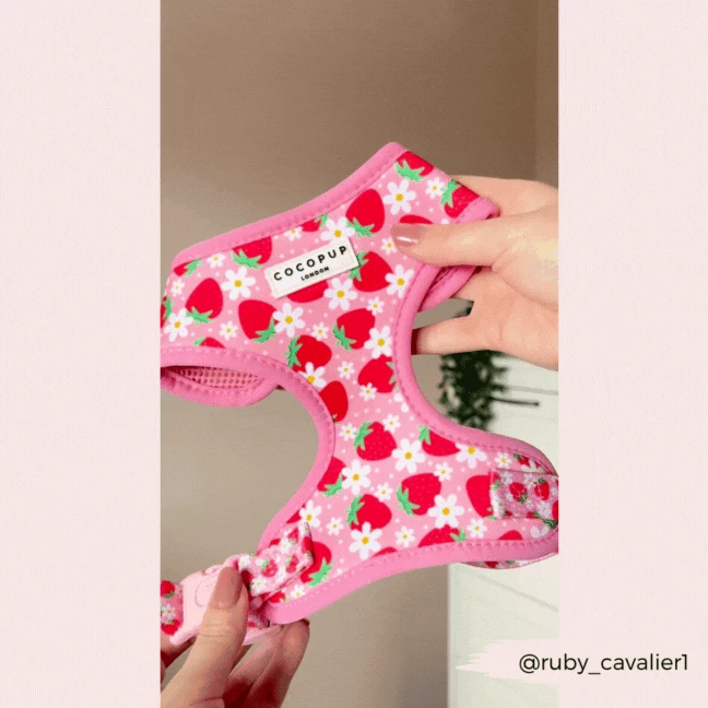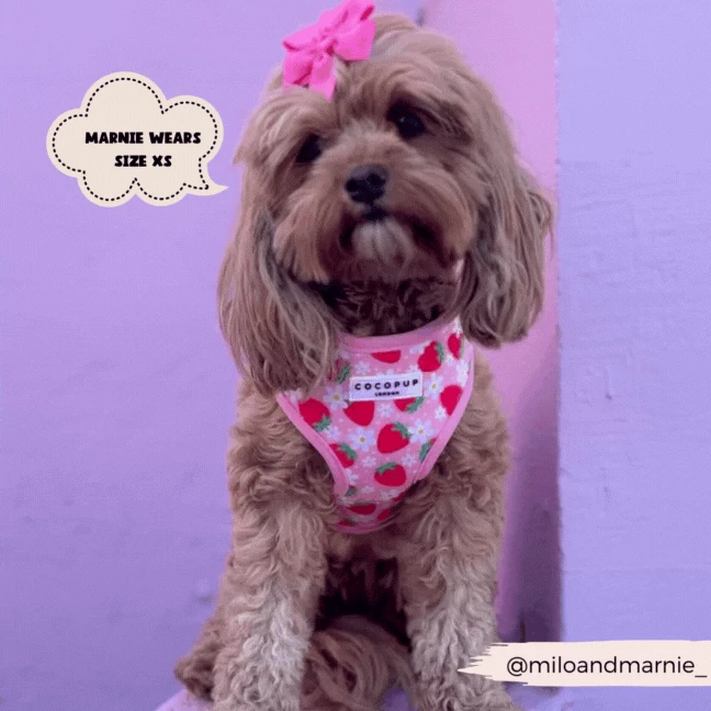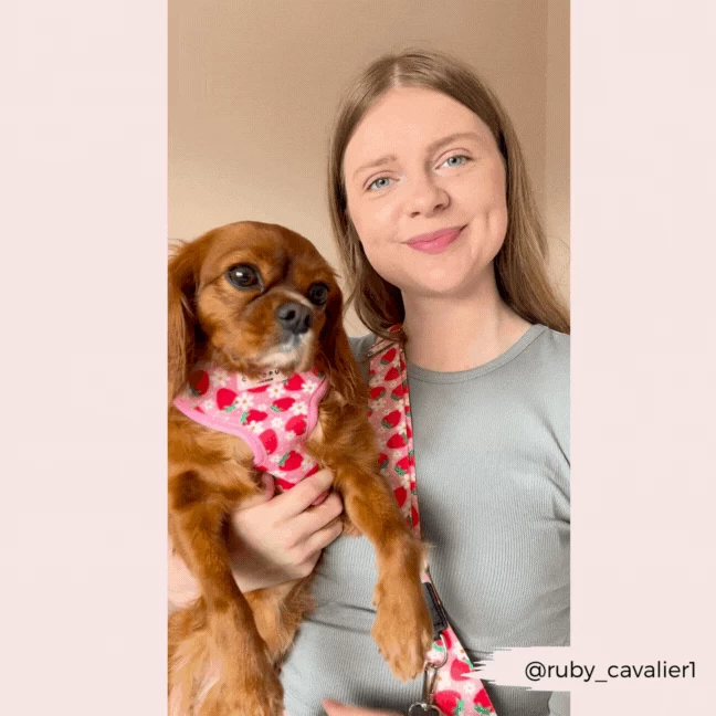 Add some zest your dog walks with our vibrant Pupberry Fields Adjustable Neck Harness! Fresh, fruity, and fun – perfect for summer strolls. Now you and your pup can stand out and add a splash of colour to your walks. (Walkies have never been so sweet!)