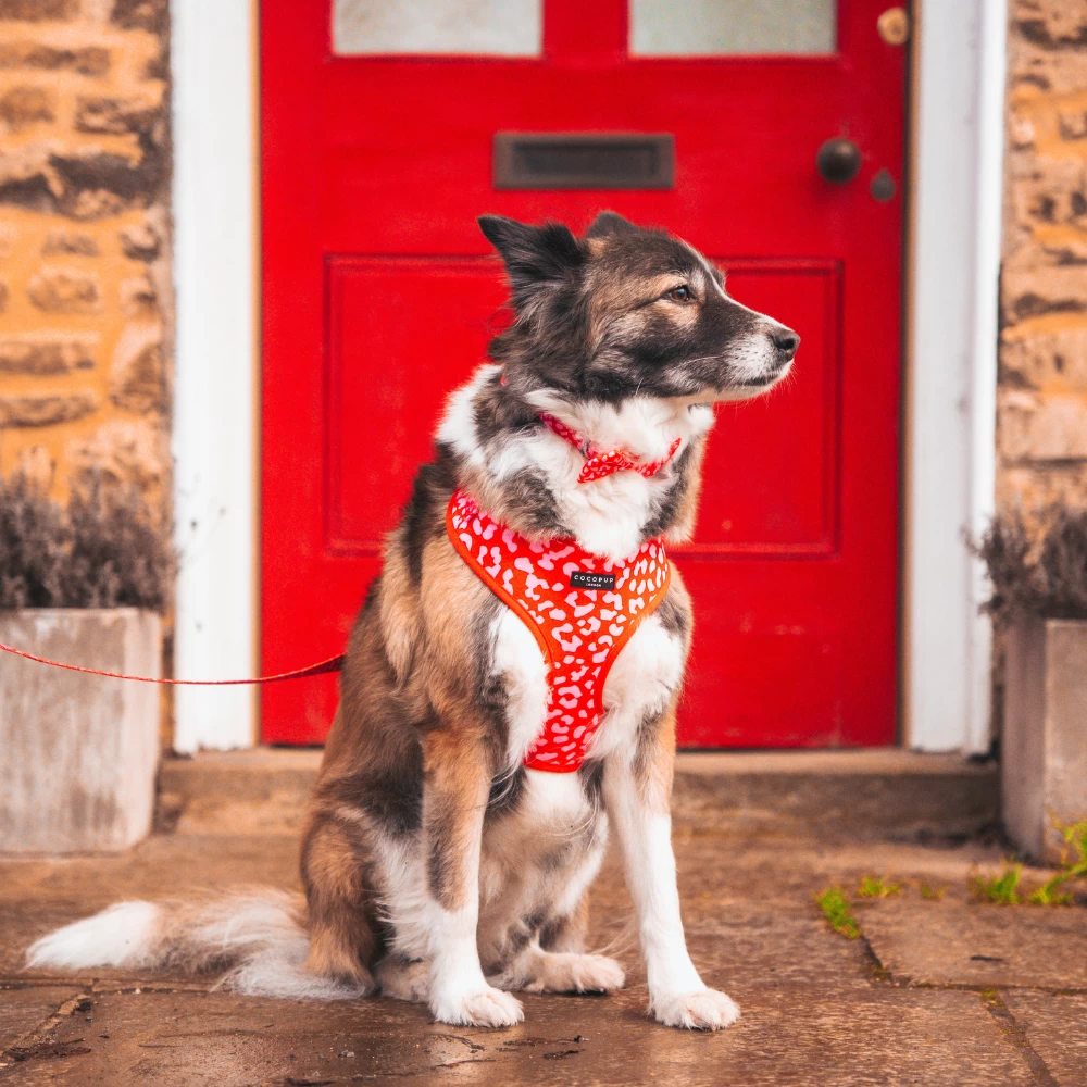 Love is in the air. Get your pooch smooch ready with our Red & Pink Leopard Adjustable Neck Harness.Â