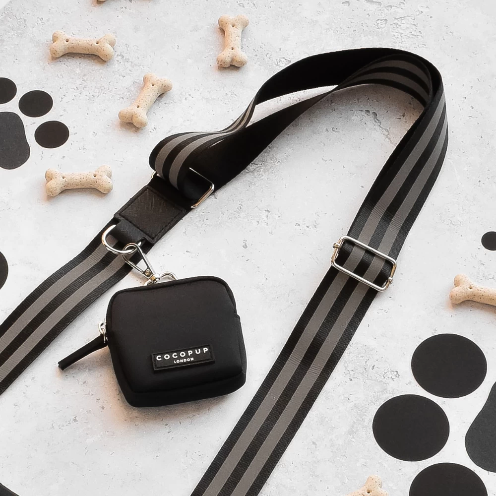 Be seen while walking your dog with this reflective bag strap in black. Stay safe and stylish with its reflective material. Perfect for those late night walks (or early morning ones if you’re an early bird!).