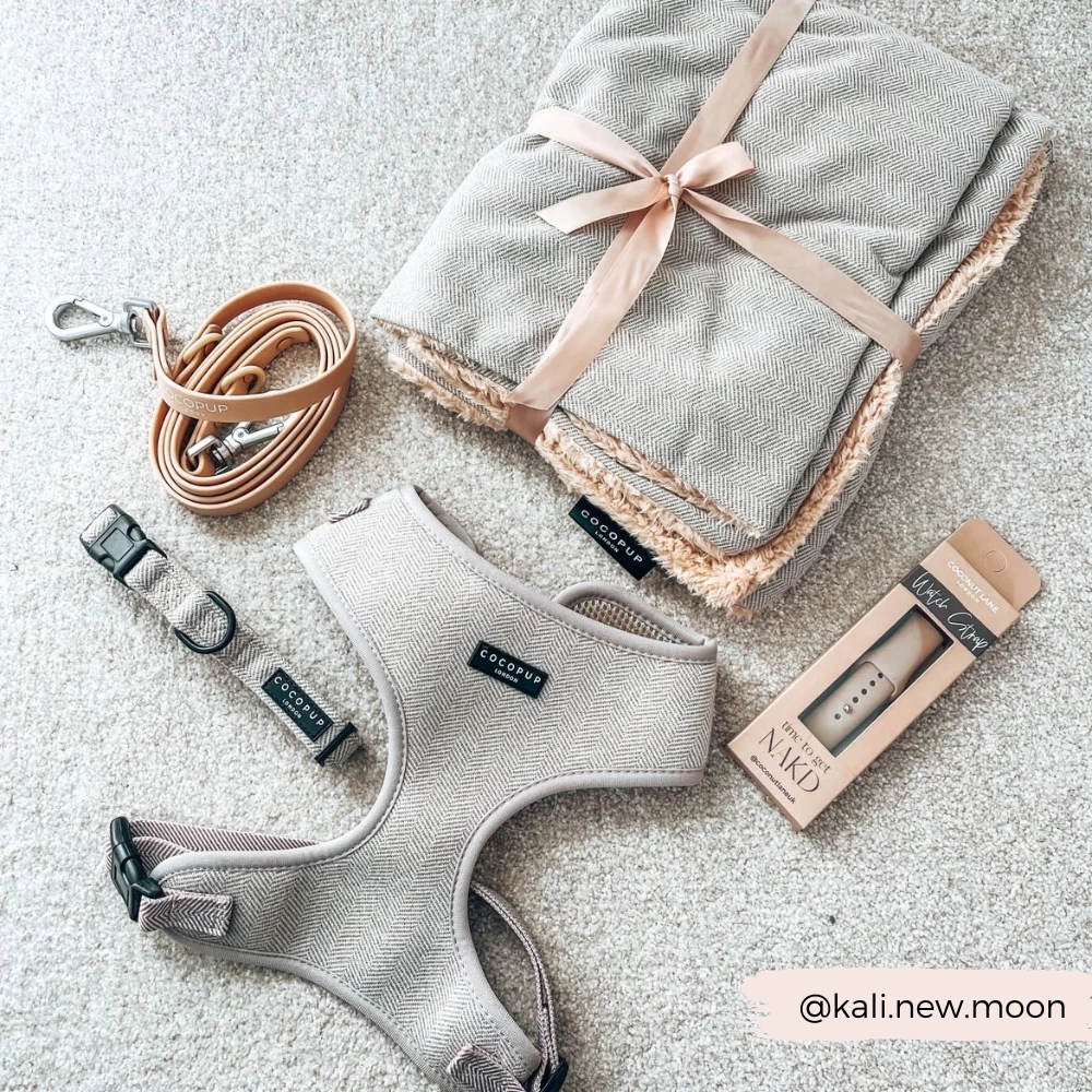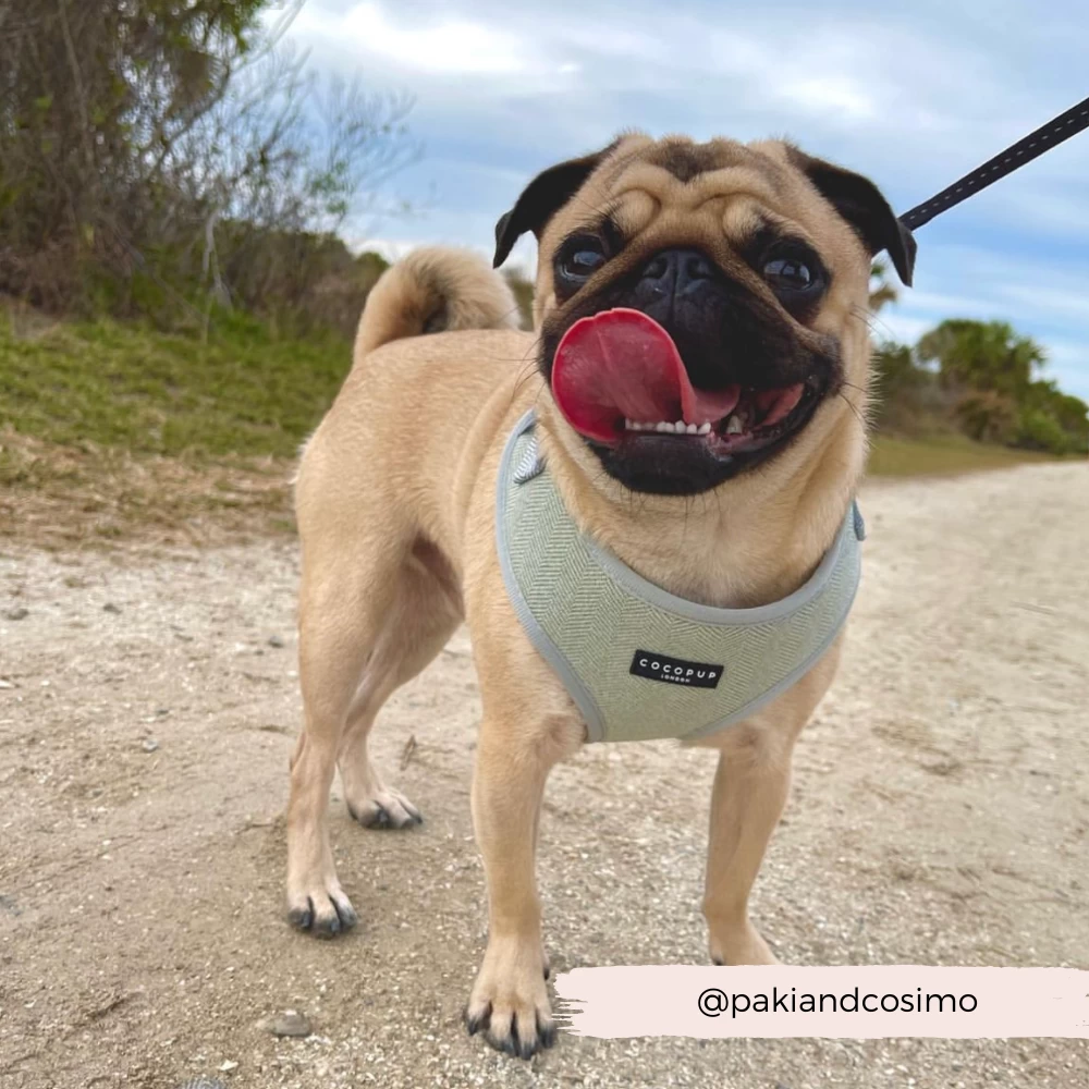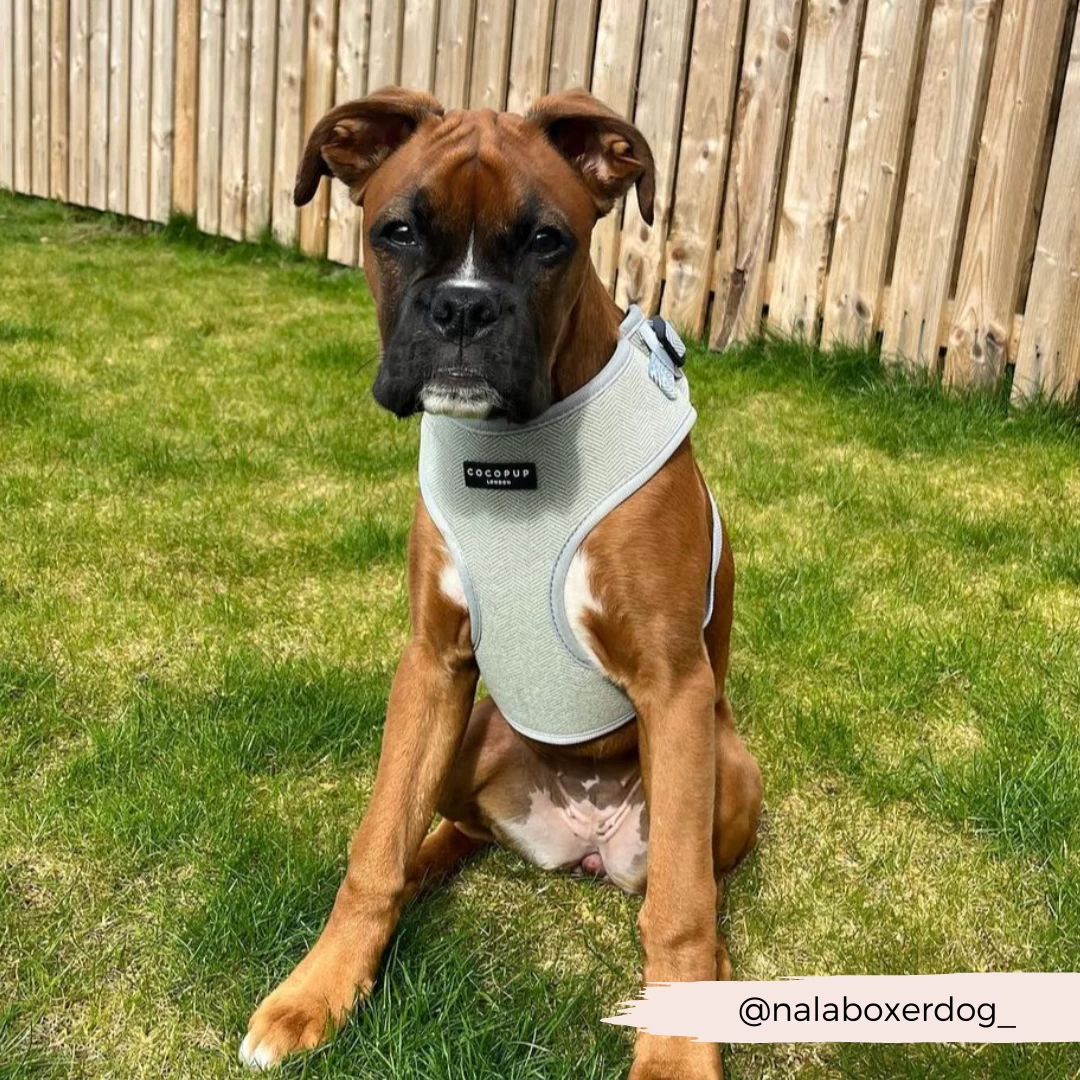 Country bumpkins say hello to our stunning Sage Tweed Adjustable Neck Harness. This herringbone pattern and super soft material make for the most perfect addition to any pupdrobe. Take on walkies in chic country style.Â