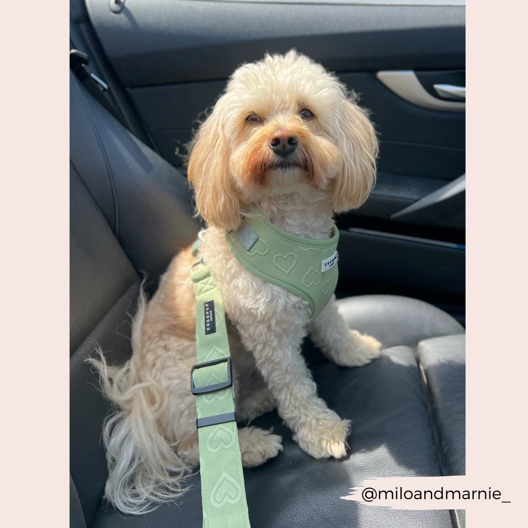 Keep your pup safe, secure and stylish. Our Sage Heart Seat Belt Restraint is the travel must have for short car trips or those exciting road trips!