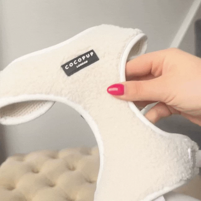 Our Adjustable Neck harnesses provide a comfy and stylish alternative to collars. Slide over your pup’s head, adjust at the neck and chest, fasten at the side and you’ll be “walkies” ready!