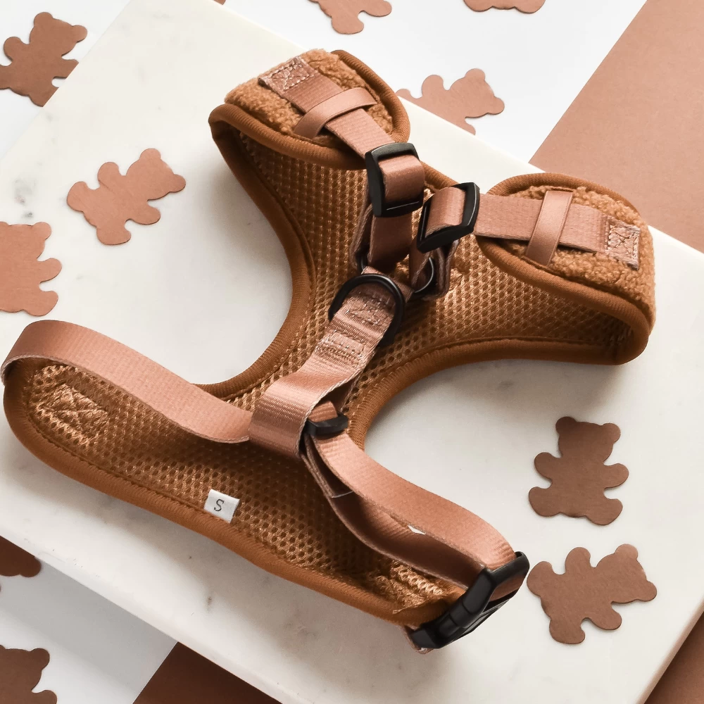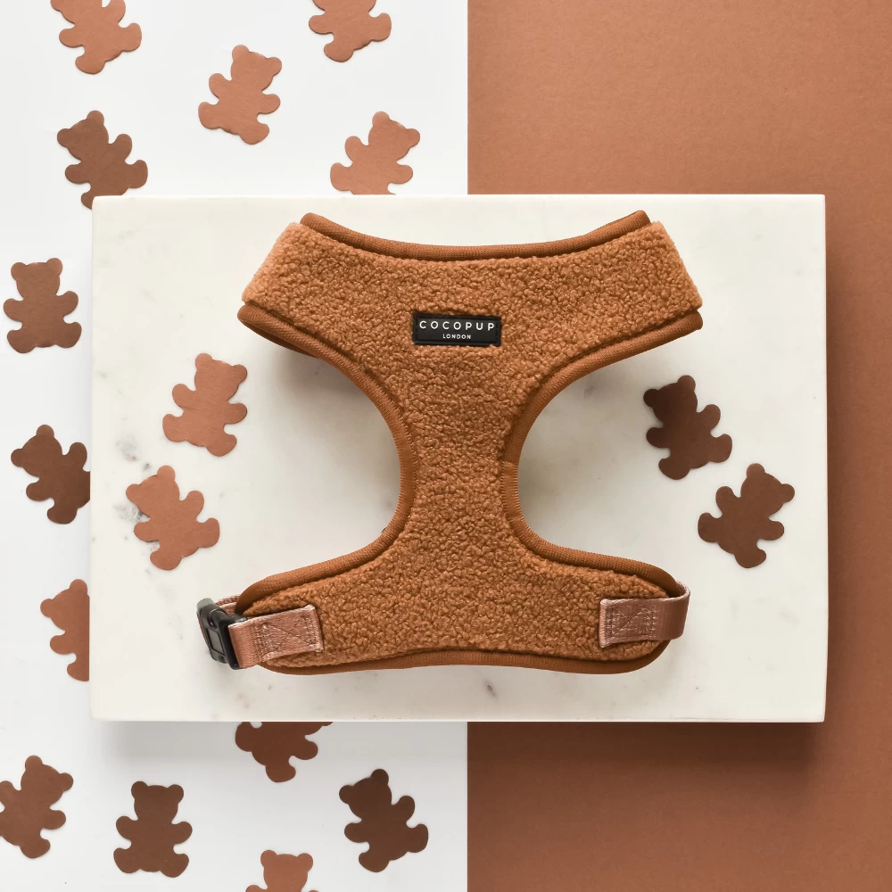 Our Adjustable Neck harnesses provide a comfy and stylish alternative to collars. Slide over your pup’s head, adjust at the neck and chest, fasten at the side and you’ll be “walkies” ready!