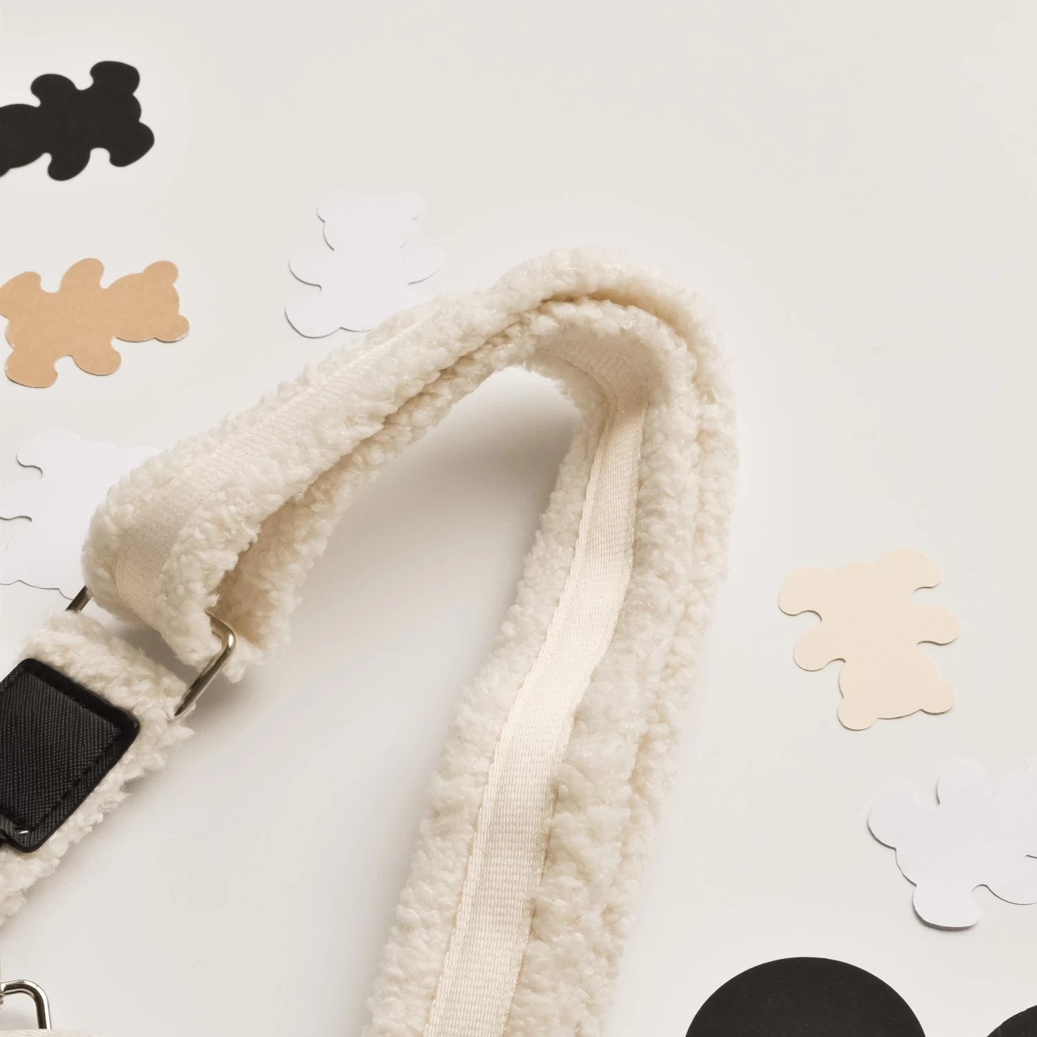 The Dolly Teddy Bag Strap is the perfect accessory to your look. With this gorgeous dark fluffy design, Dolly will add loads of fluffy cuteness to your wardrobe.Â
